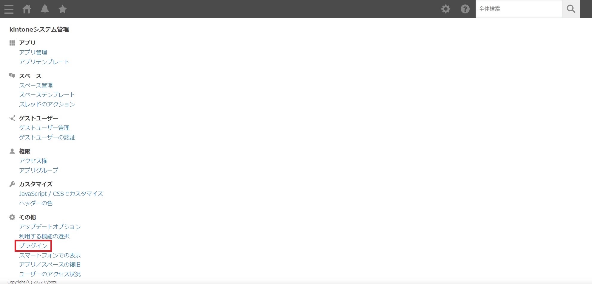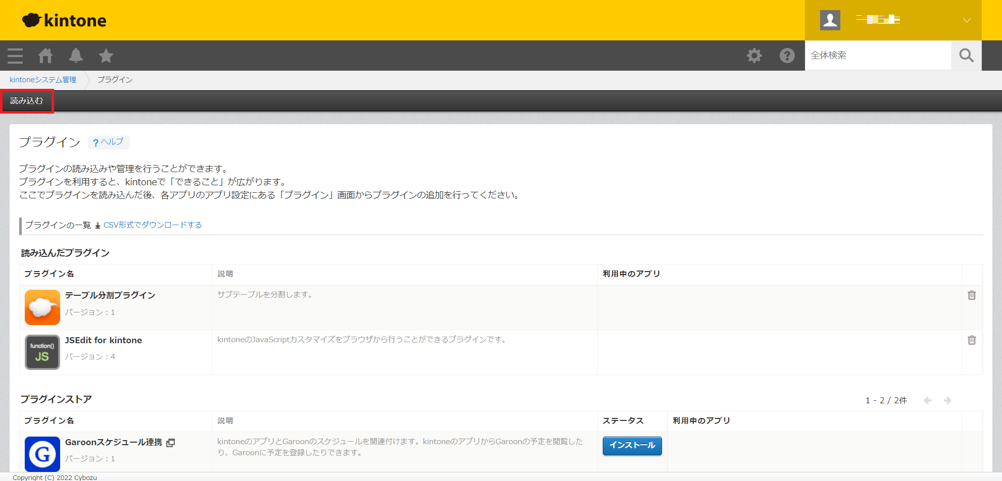 プラグインをインポートするには、kintoneシステム管理者の権限が必要です。
