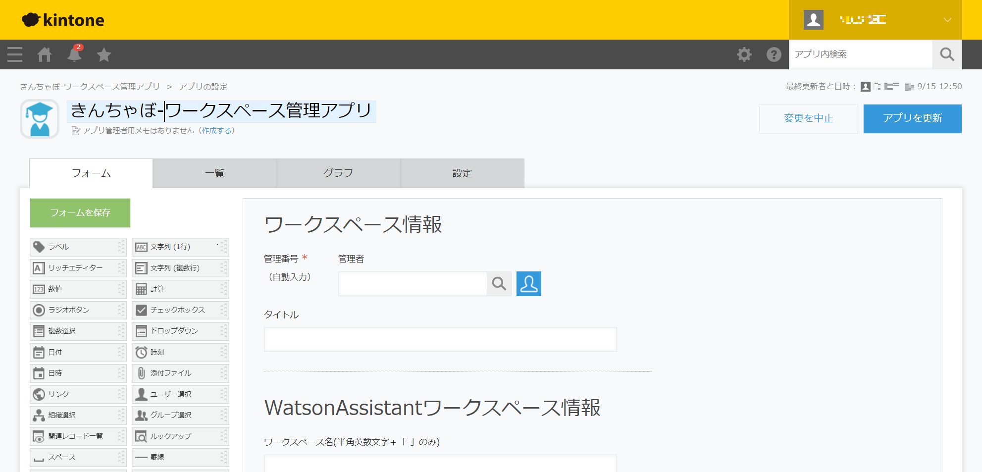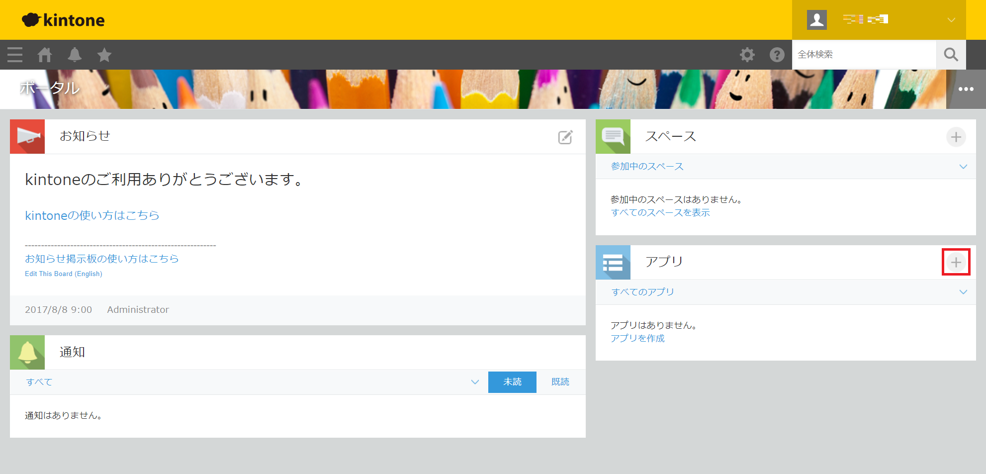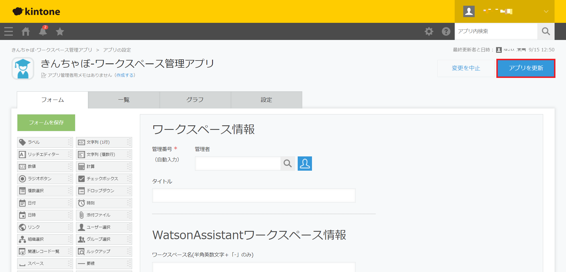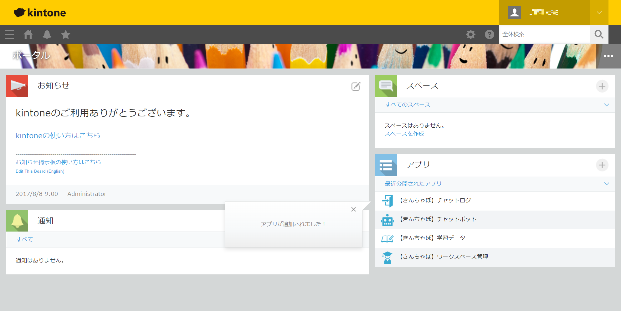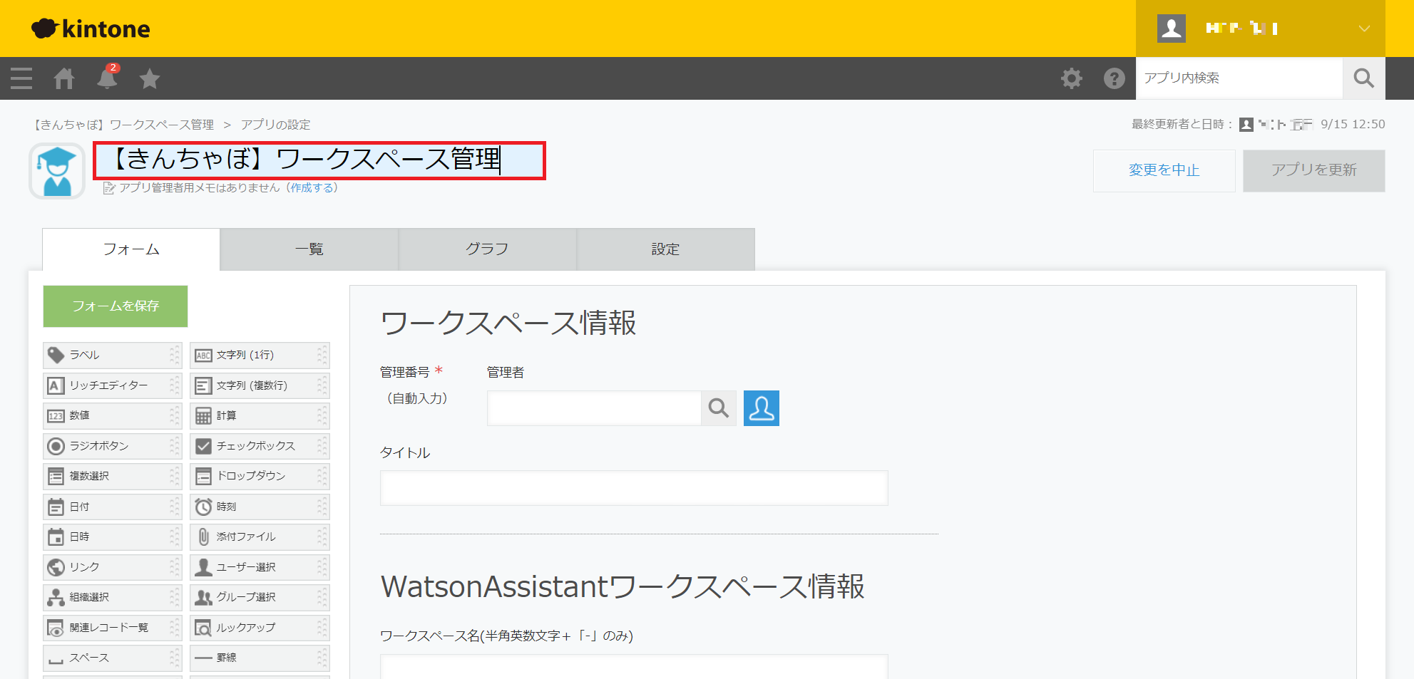 スペースにきんちゃぼを作成する場合は、「スペース内にアプリを作成する場合」を参照し、最初の手順を読み替えてください。(ゲストスペースへの作成は未対応です。)