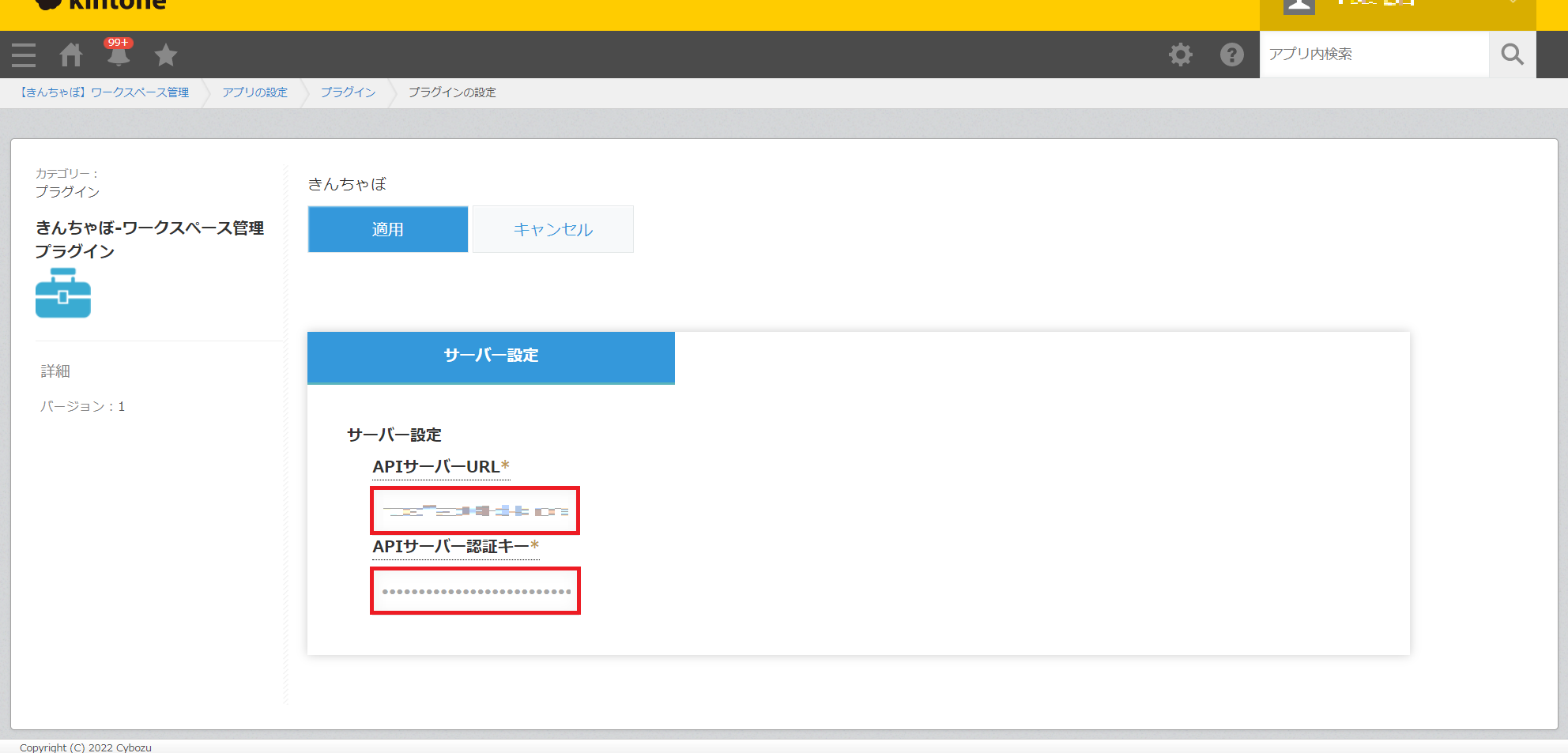 設定値については「環境構築の設定値」のワークスペース管理アプリのプラグイン設定を参照してください。