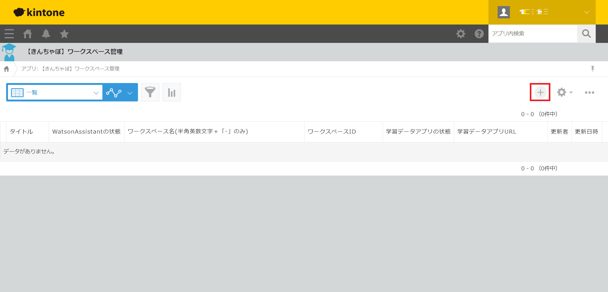 ワークスペース管理アプリの一覧画面より、「レコードを追加する」を選択します。