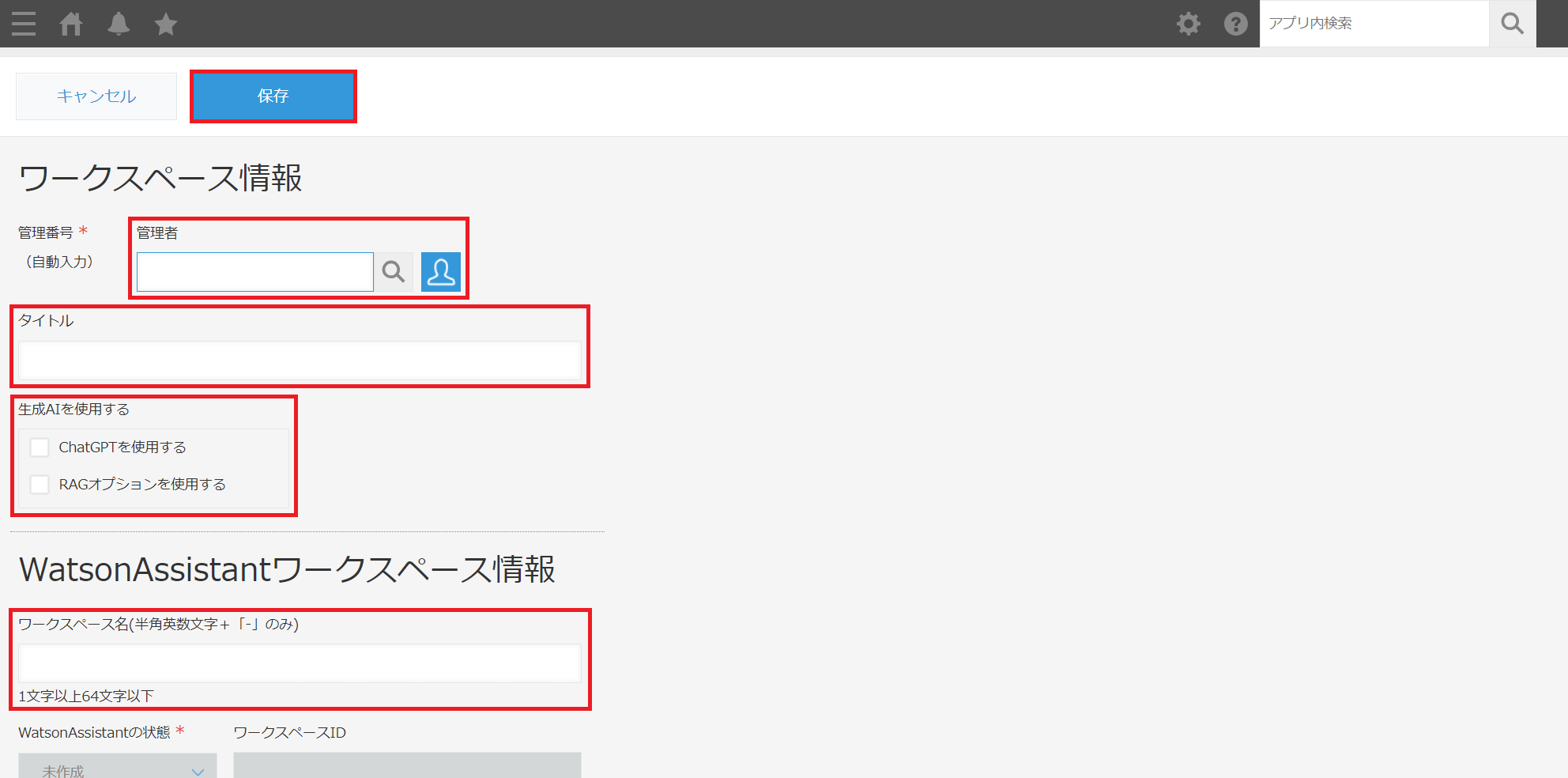 ワークスペース管理アプリに、ワークスペース情報を入力し、「保存」をクリックします。