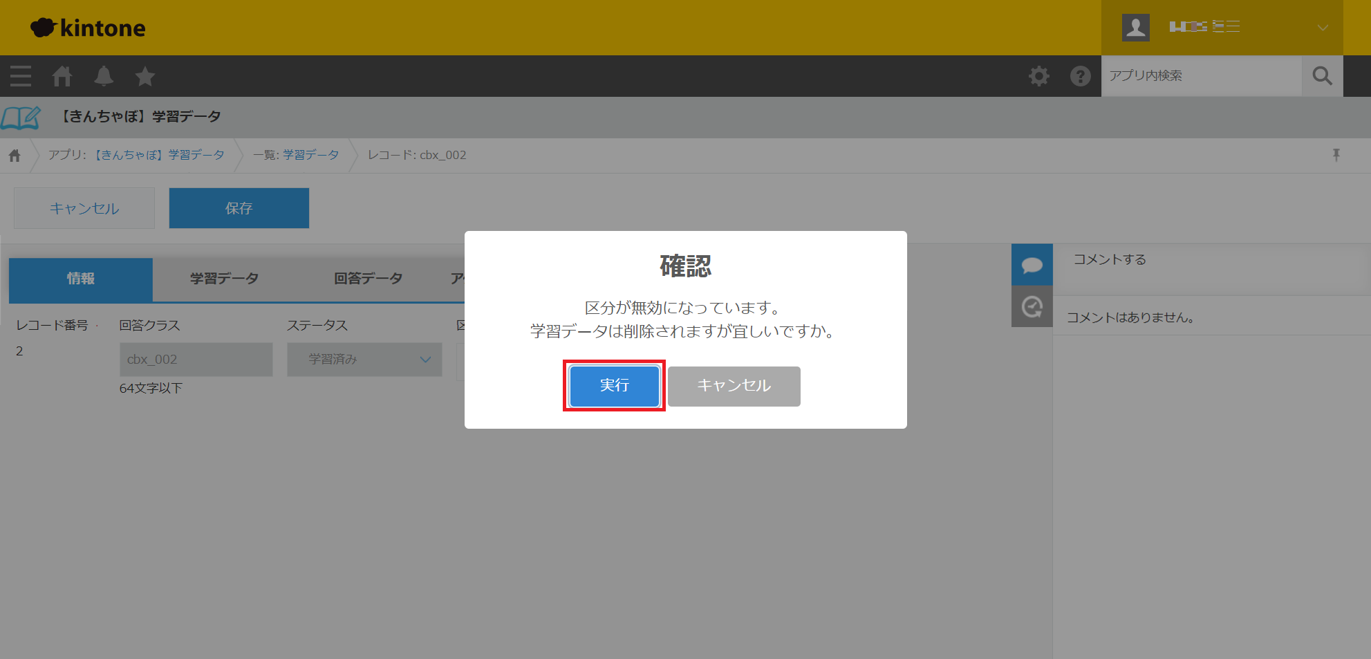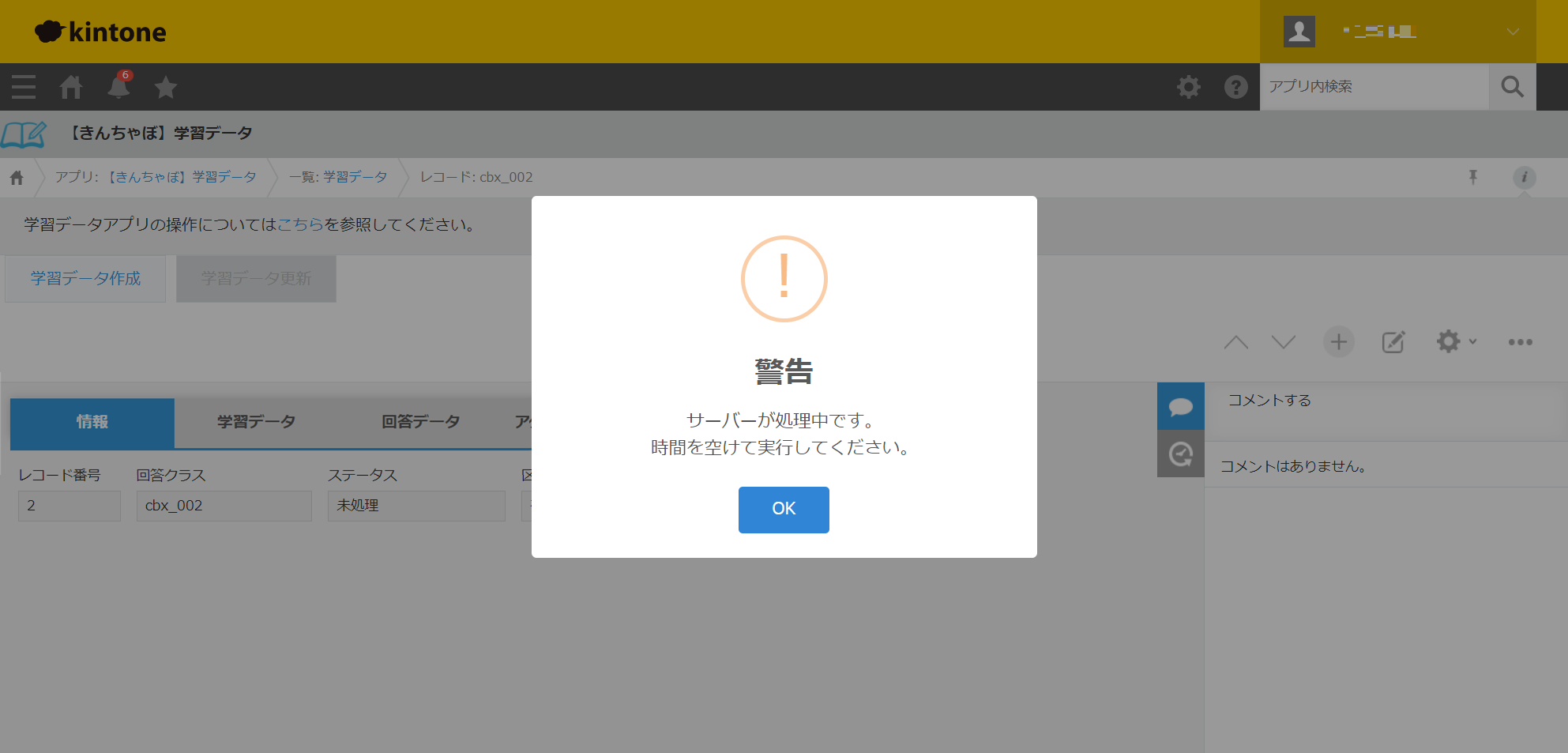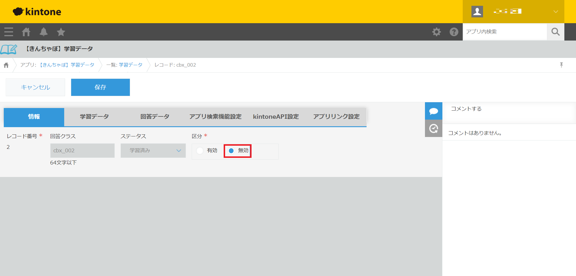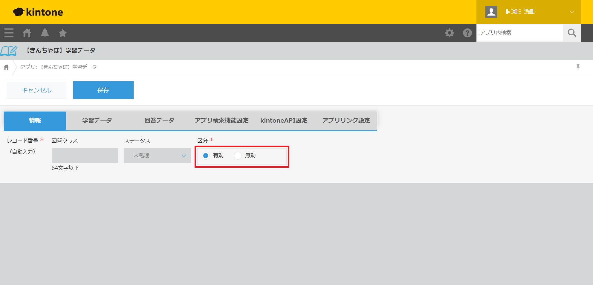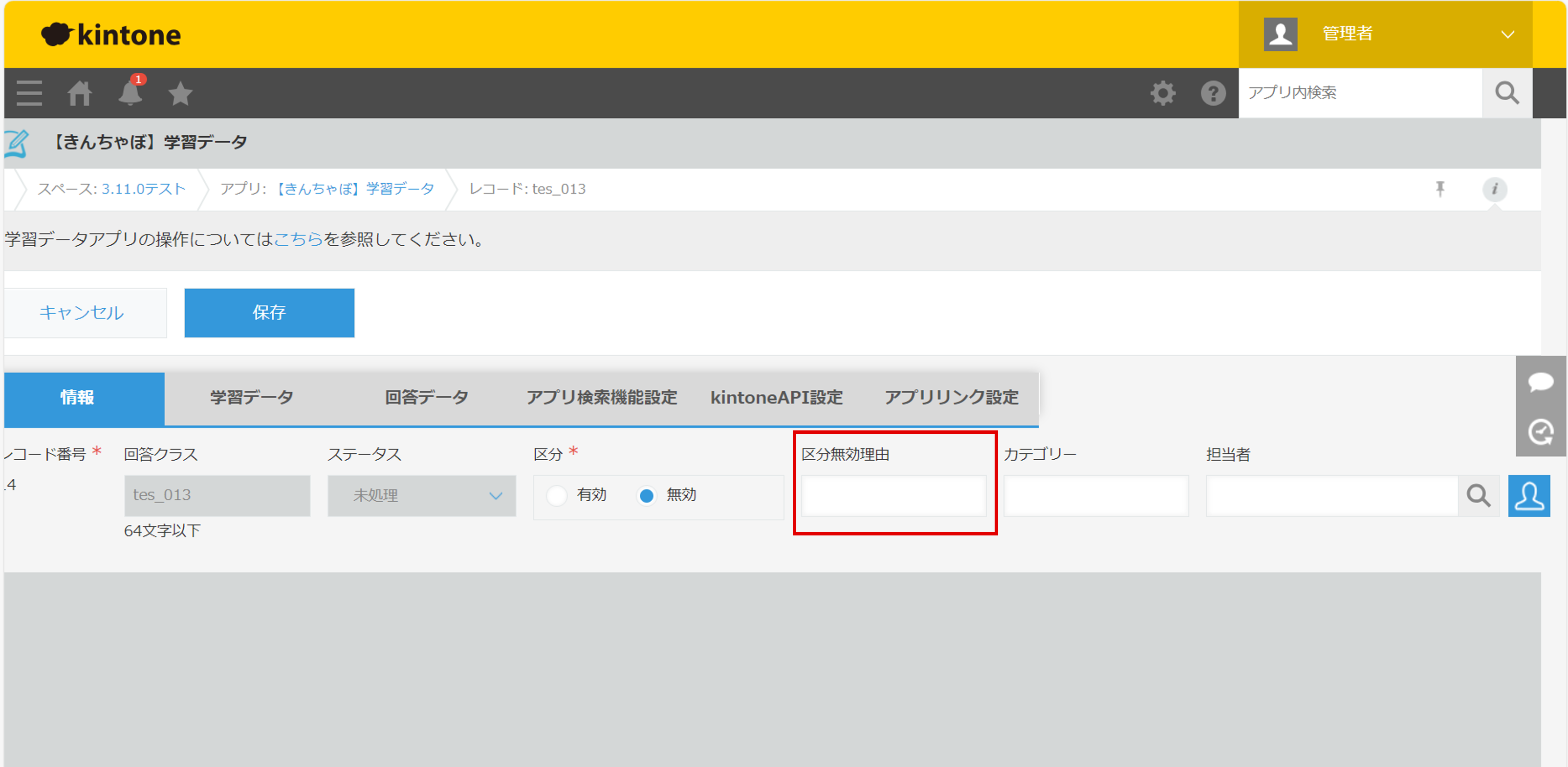 次に学習データアプリ上に表示されている赤いバー「プラグイン「きんちゃぼ-学習データプラグイン」の設定が必要です。」のリンクを選択します。