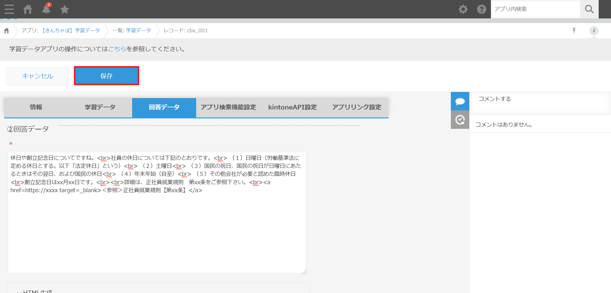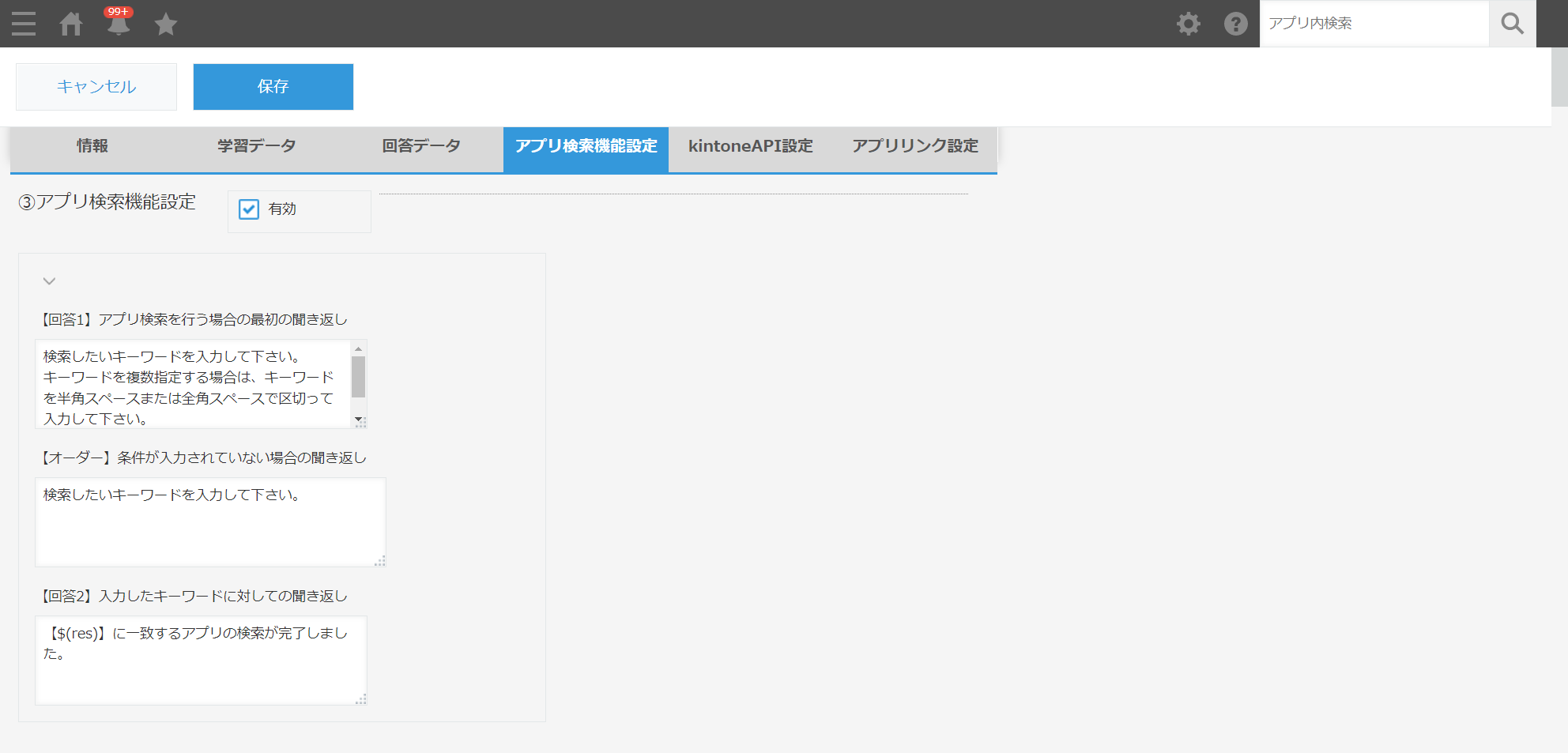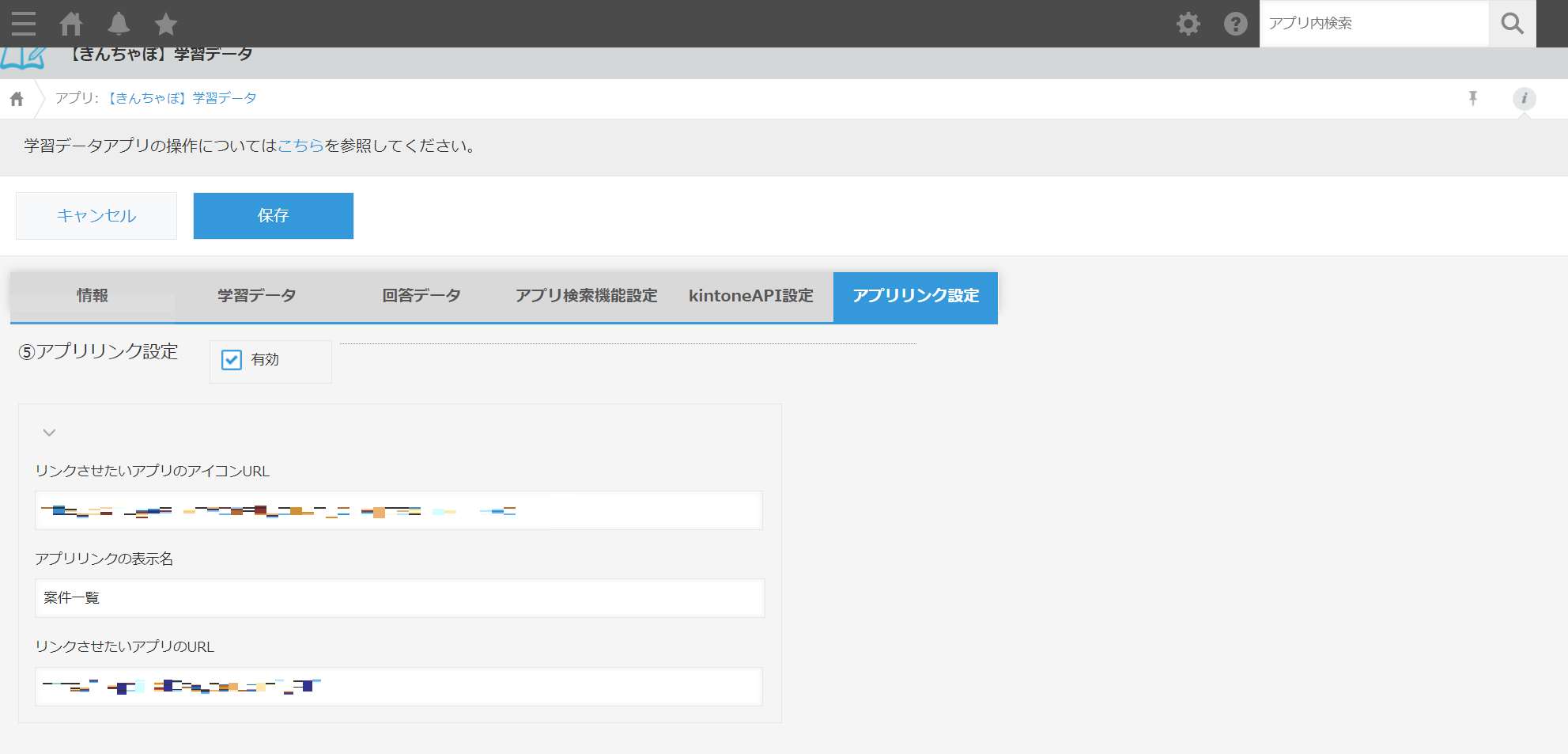 設定値については「環境構築の設定値」の学習データアプリのプラグイン設定を参照してください。