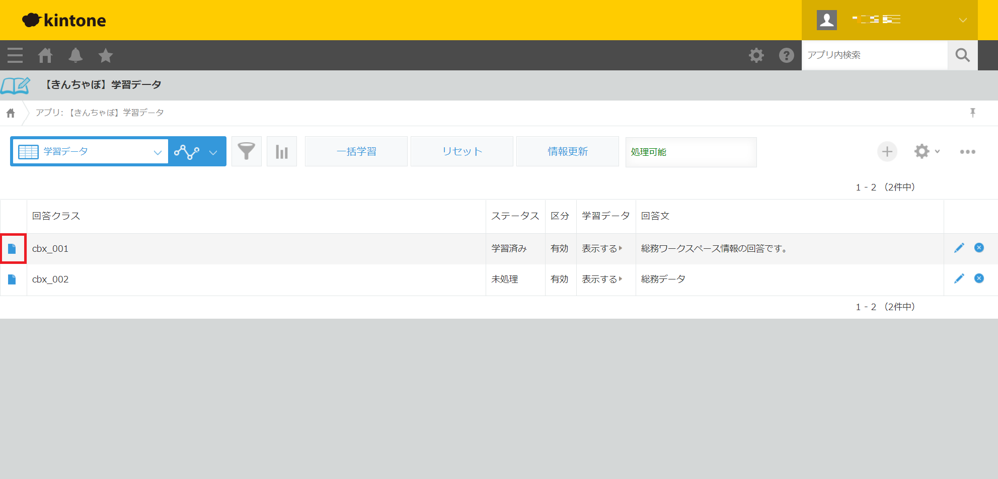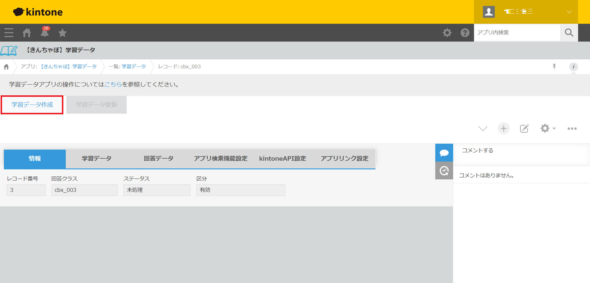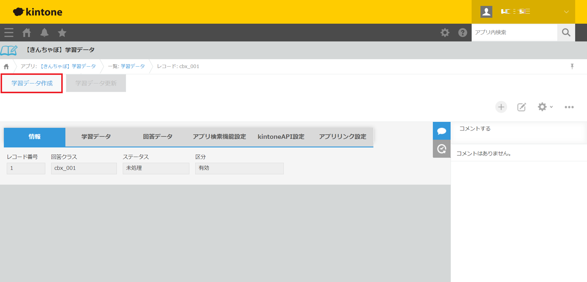 ワークスペースを選択すると、選択したワークスペースに学習データを作成できるようになります。