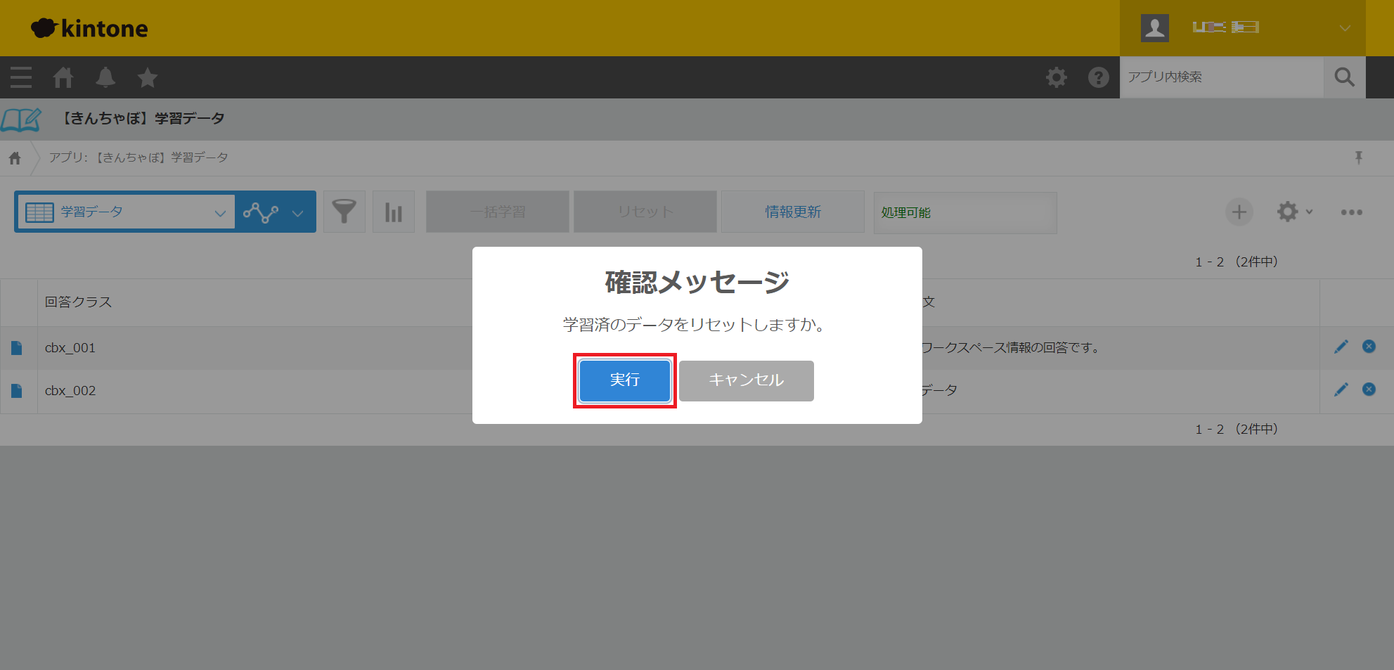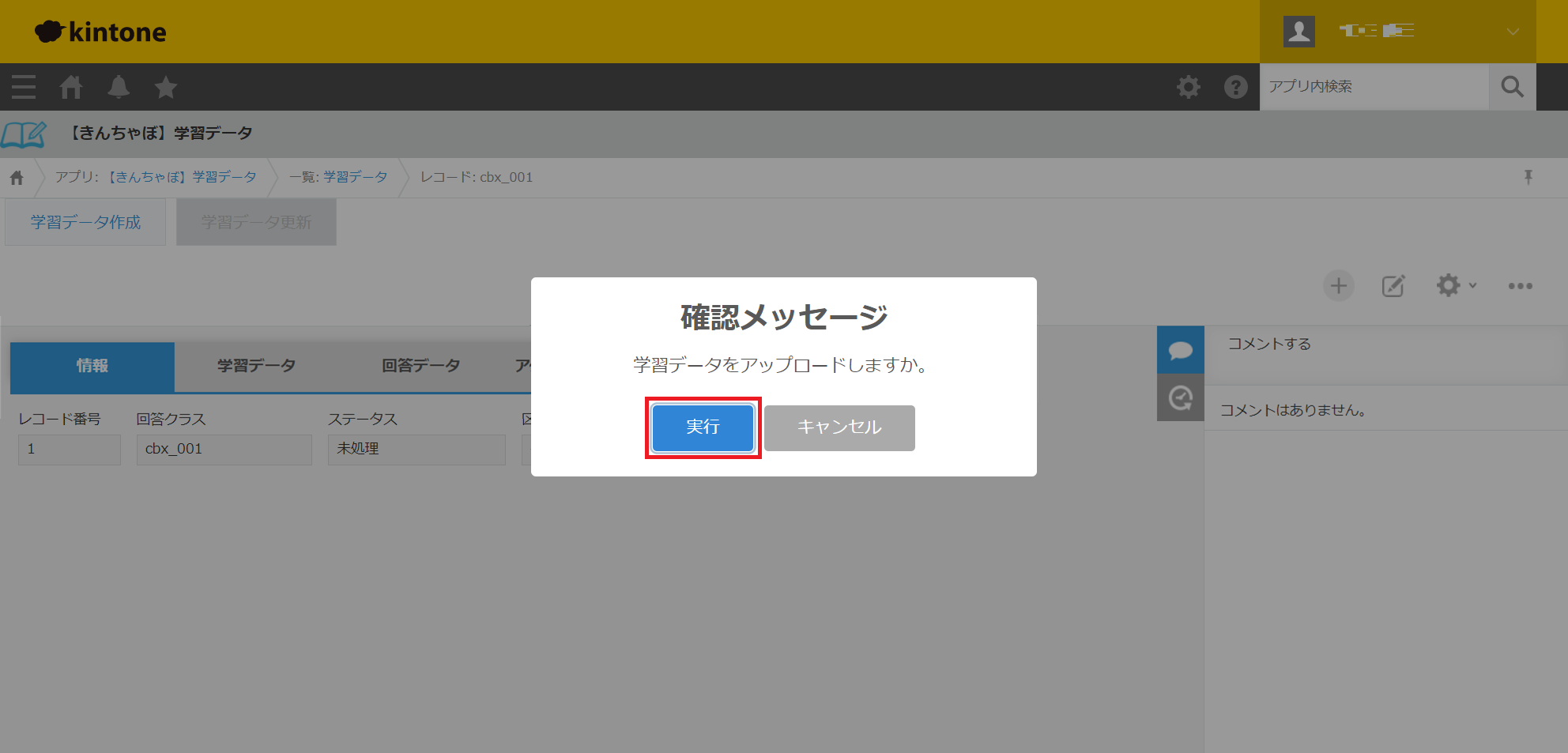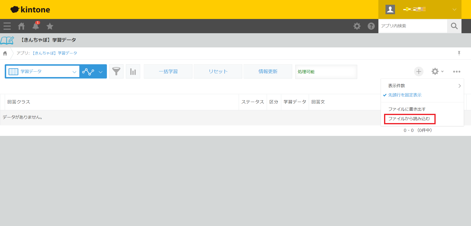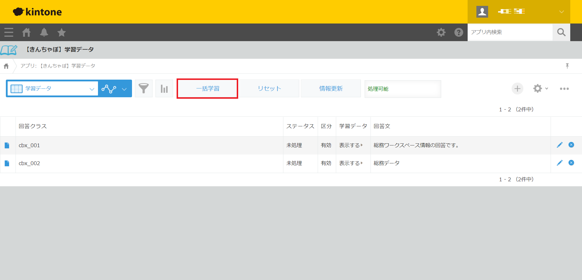ワークスペースを選択すると、選択したワークスペースに学習データを作成できるようになります。