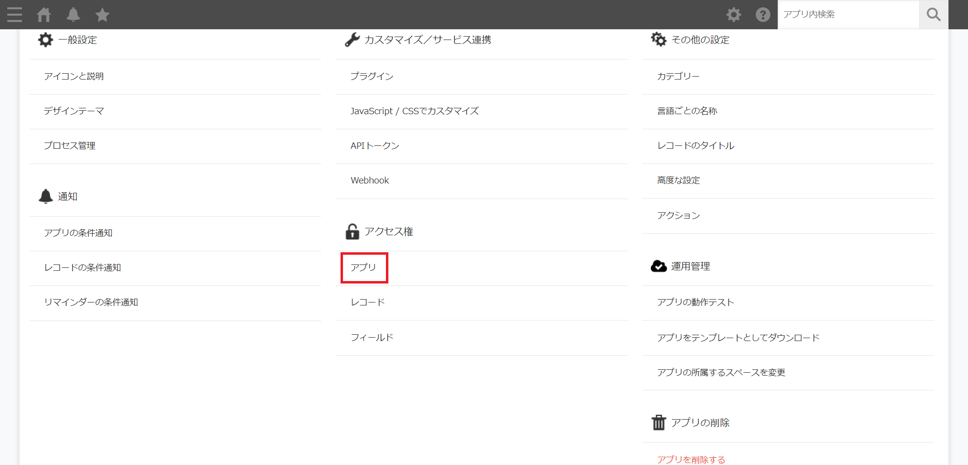 「ほかのアプリを再利用」については、kintoneヘルプの「ほかのアプリを再利用して新しく作成する(アプリのコピー)」を参照してください。