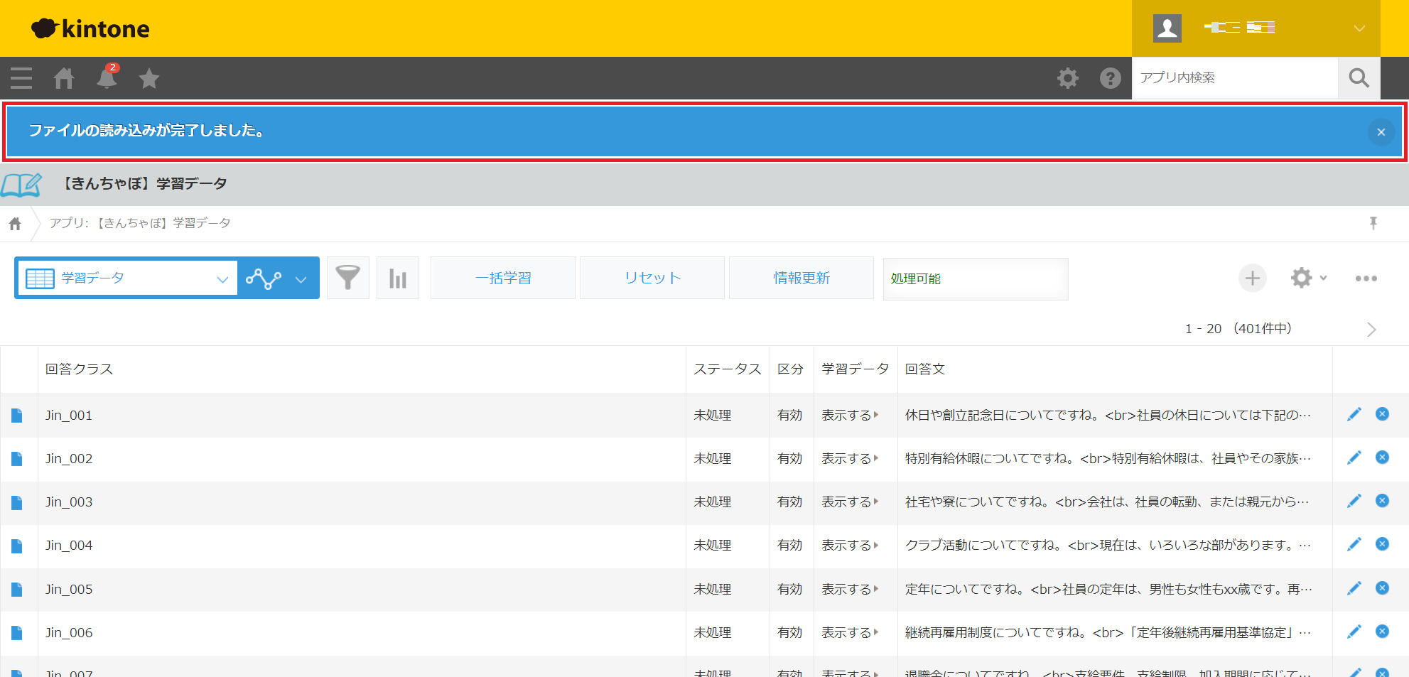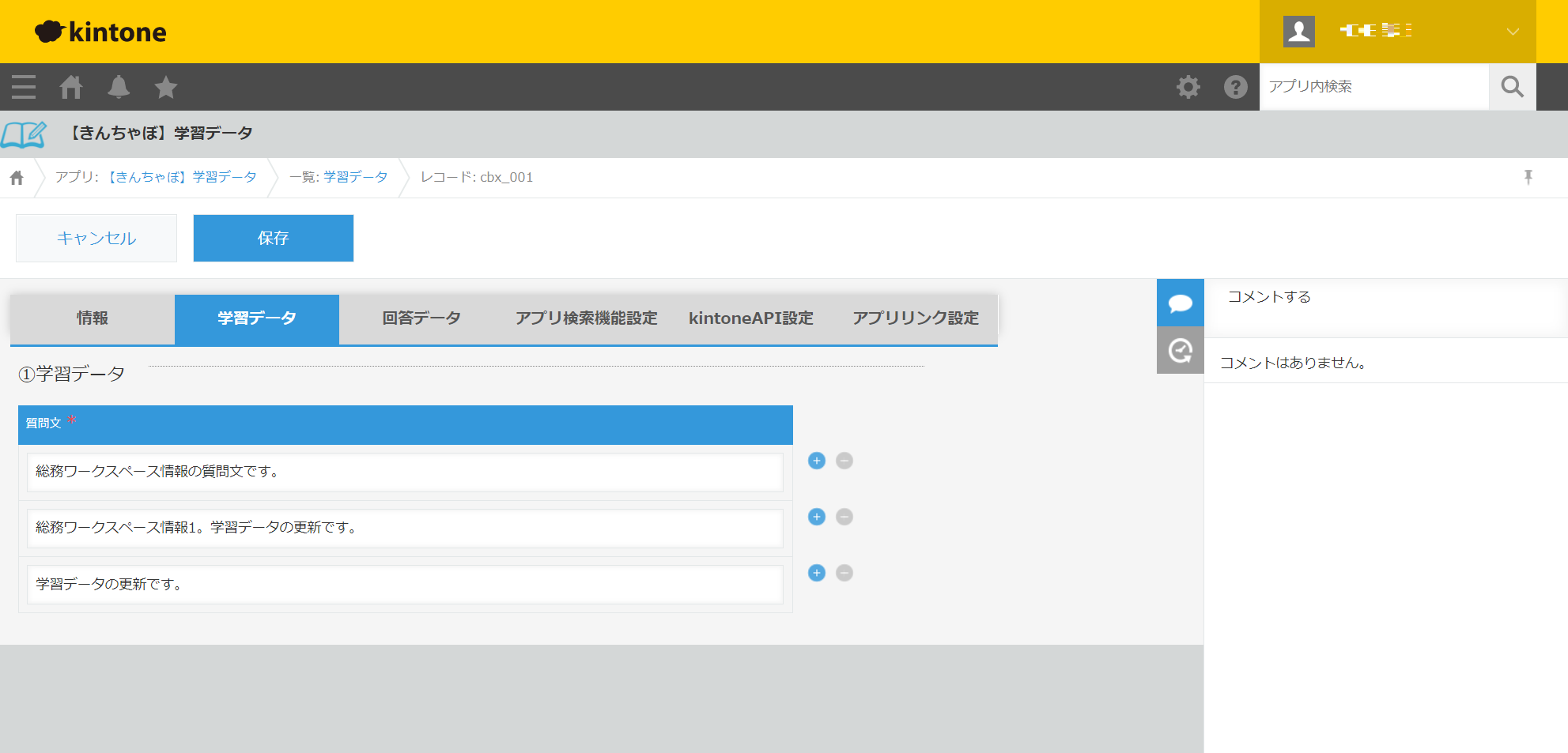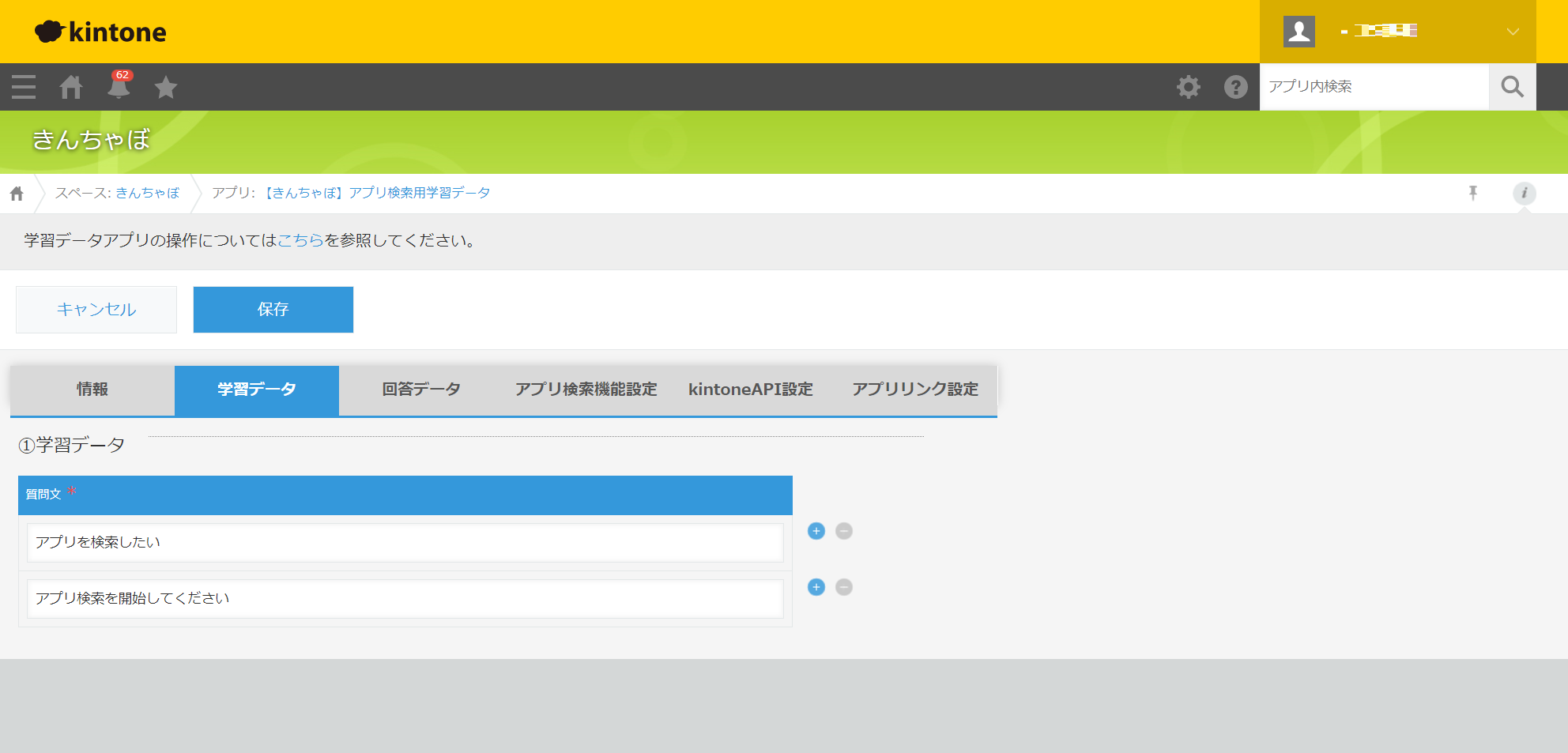 【きんちゃぼ】学習データに登録する学習データと回答データをセットにし、1ワークスペースとして登録・管理を行います。