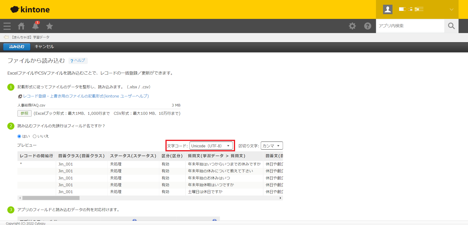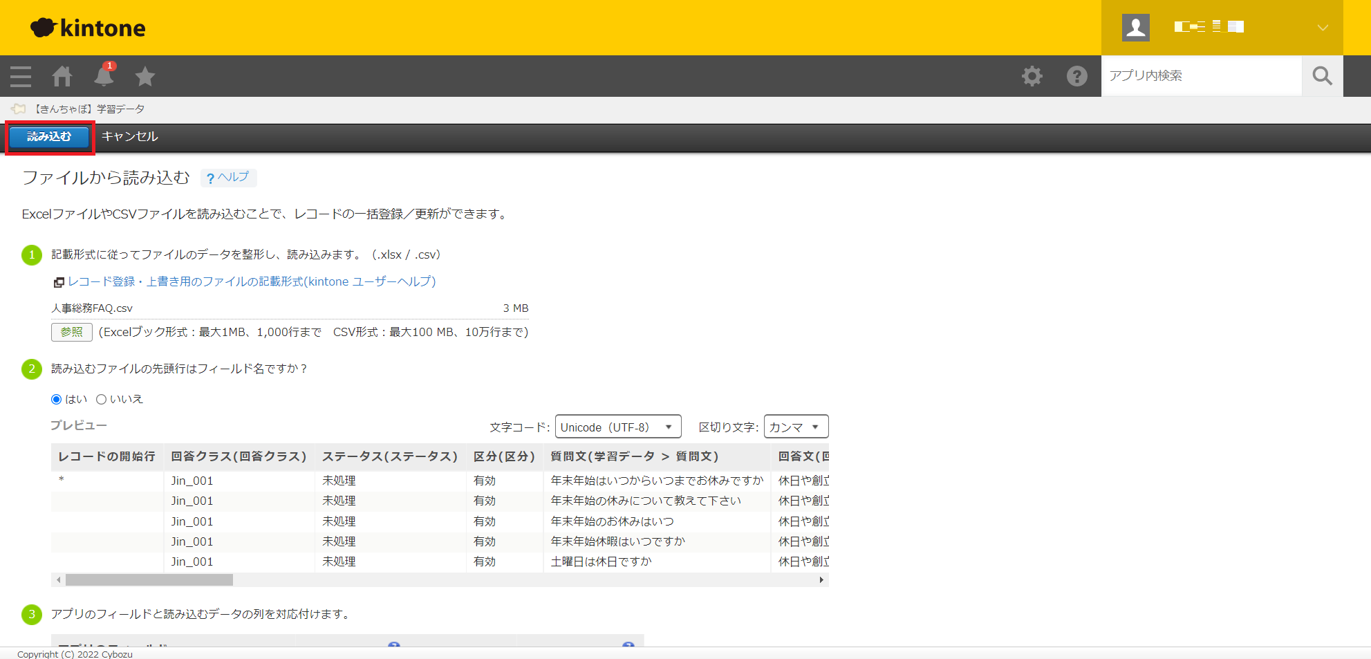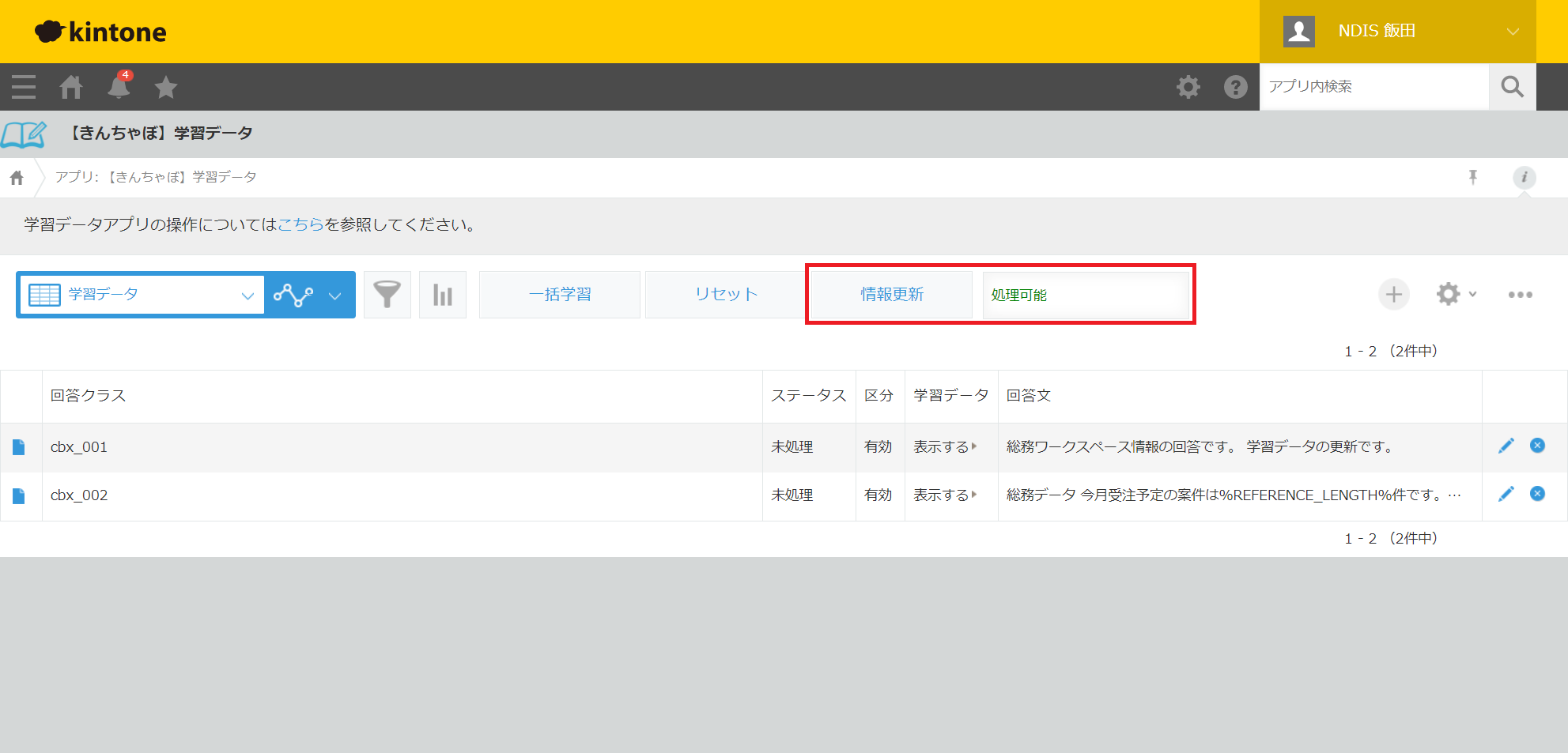 【きんちゃぼ】学習データに登録する学習データと回答データをセットにし、1ワークスペースとして登録・管理を行います。