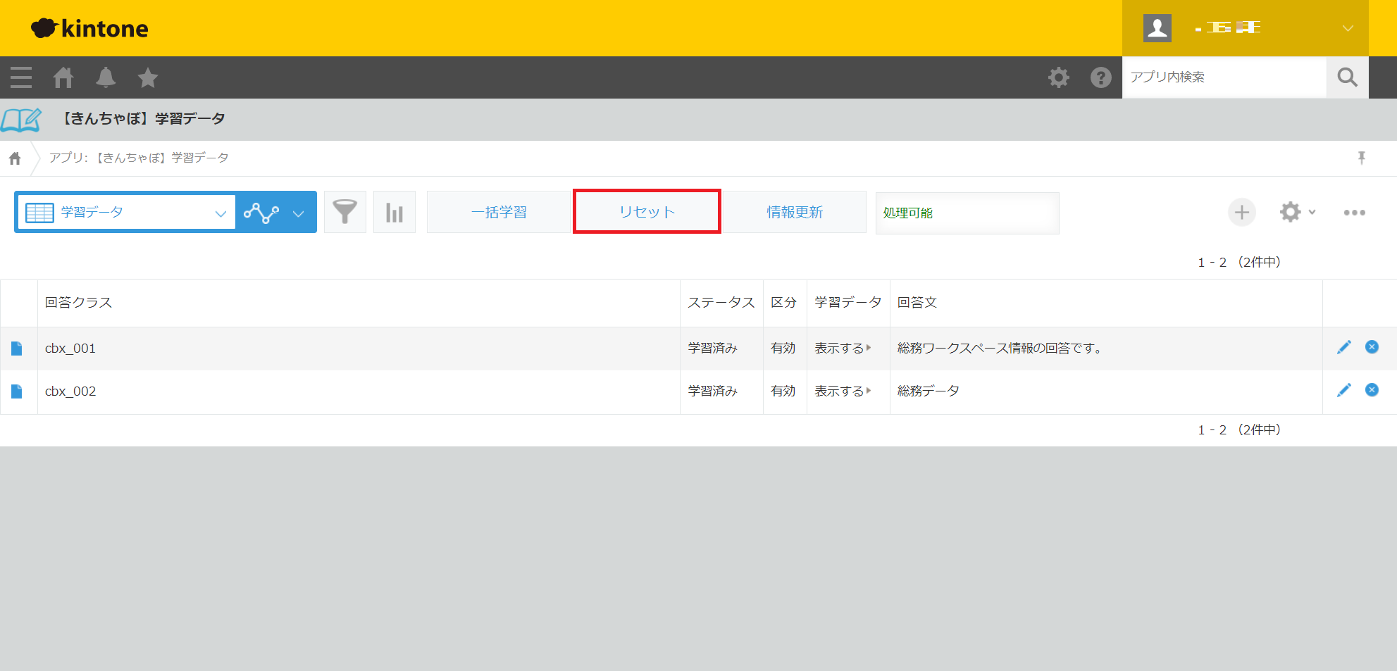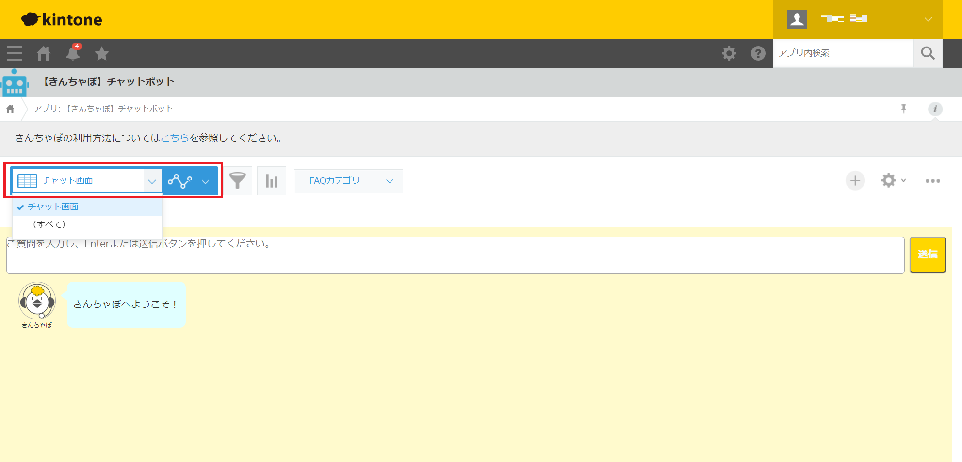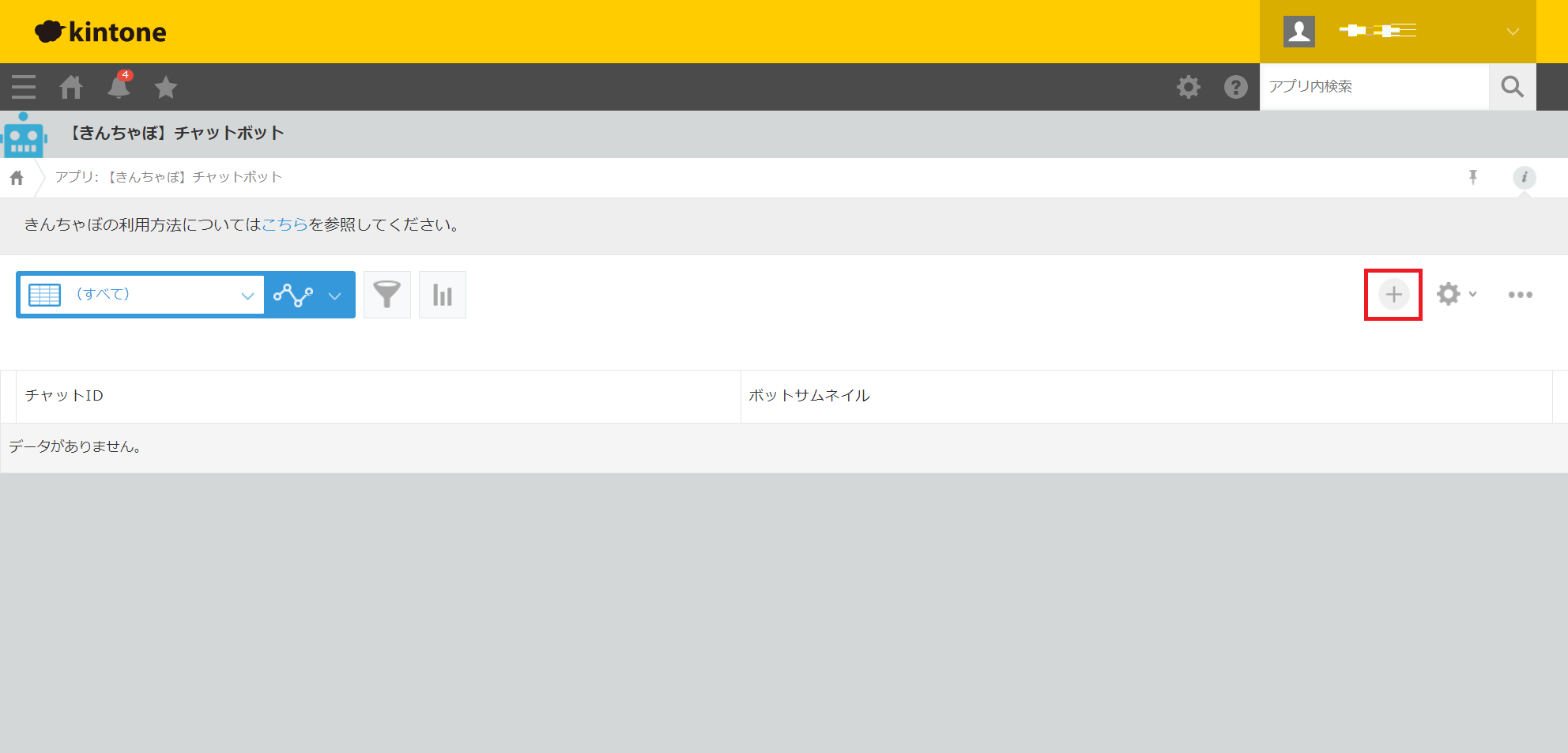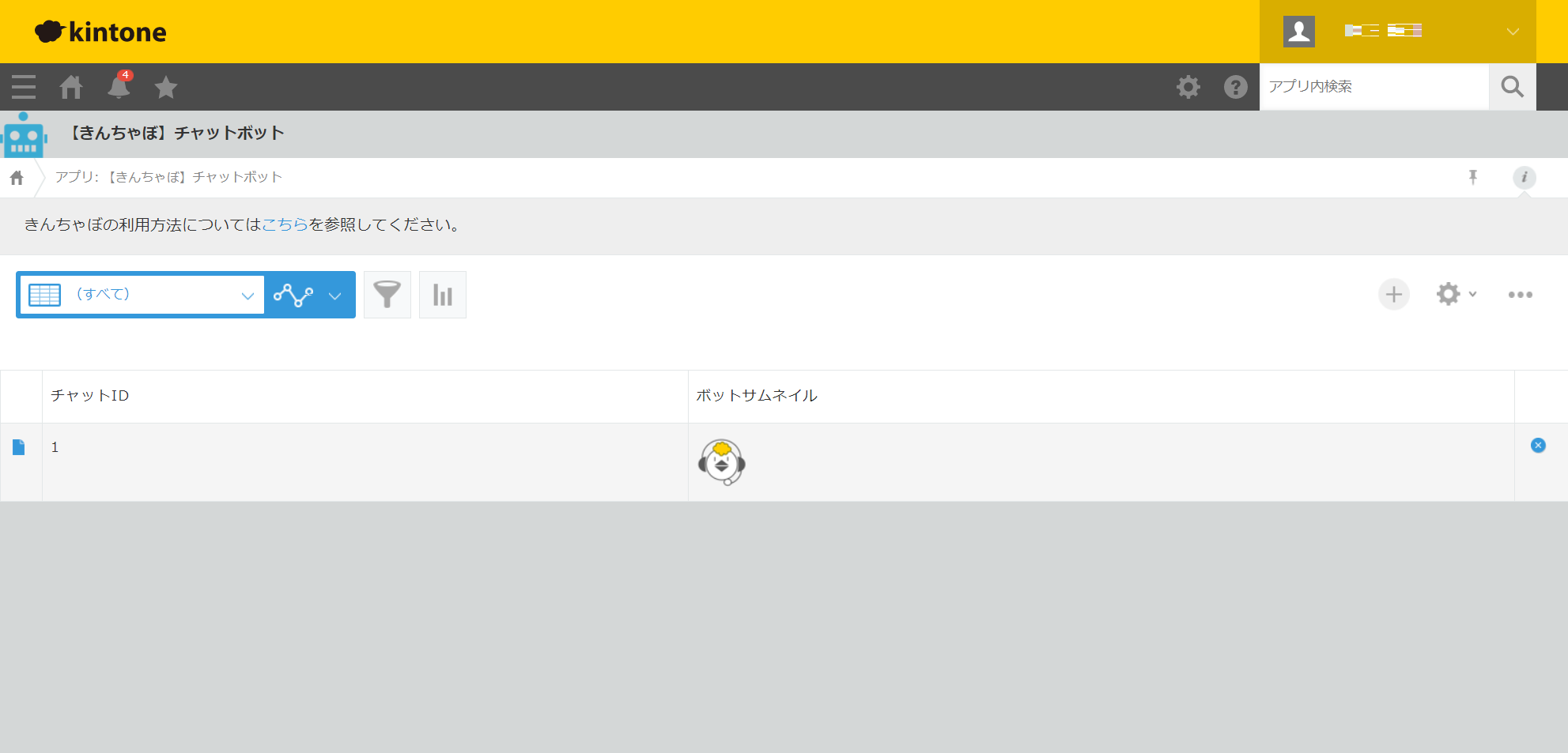 チャットボットアプリを開き、レコード選択を(すべて)に変更します。