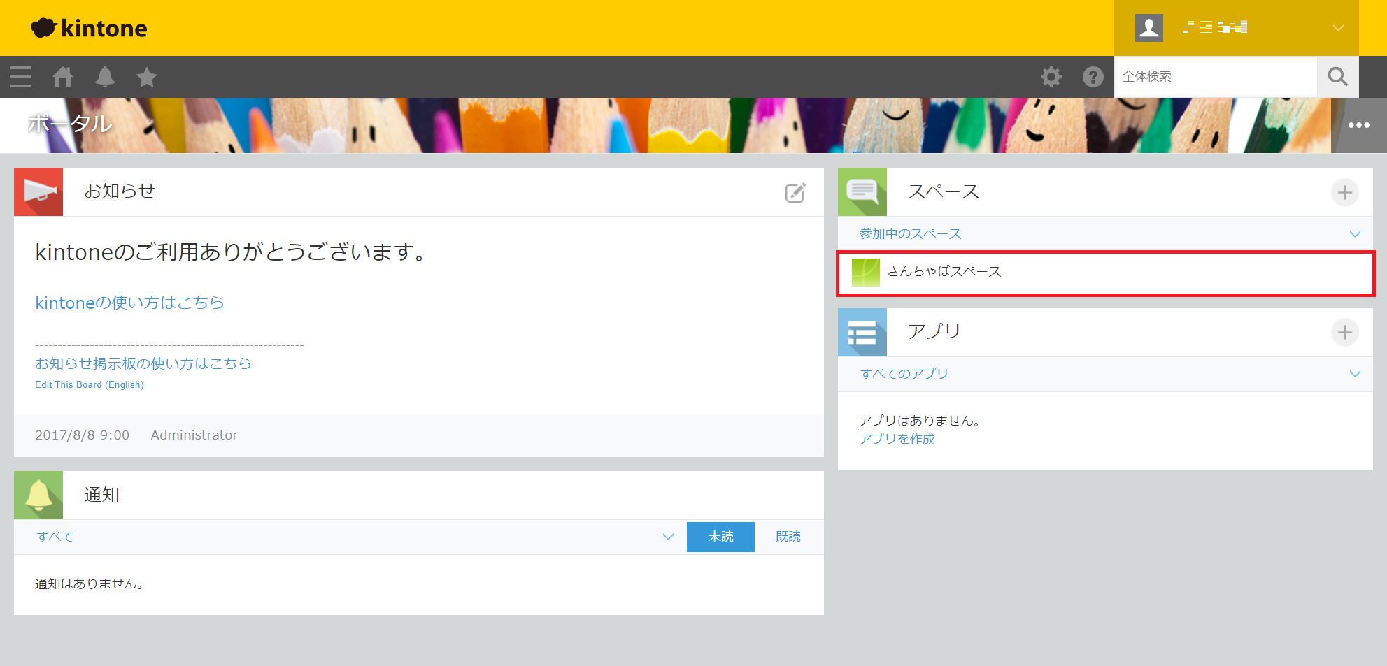 スペースの作成については、kintoneヘルプの「スペースを作成する」を参照してください。