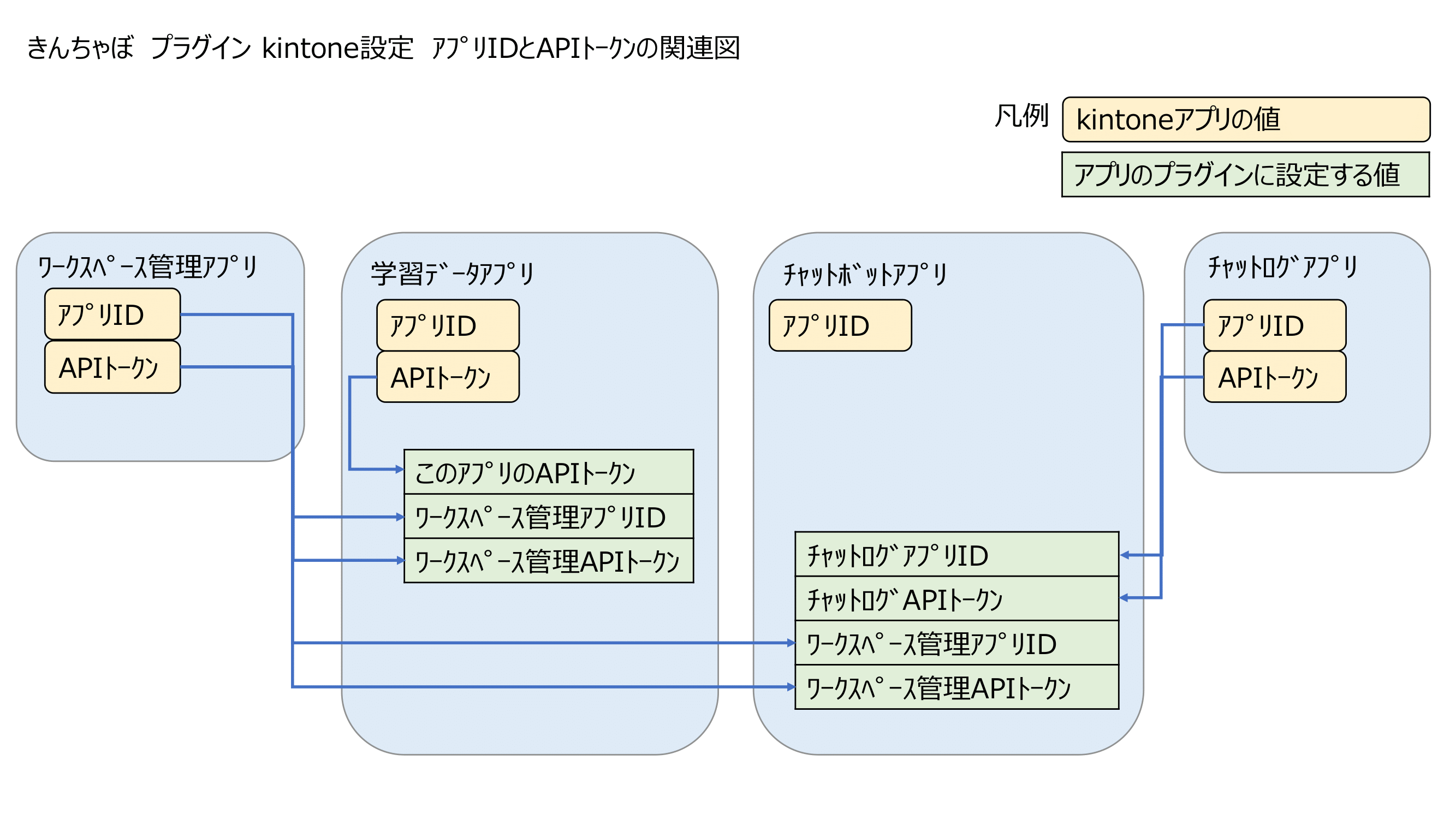 各アプリとアプリID、APIトークンの関係は以下の図を参照してください。
