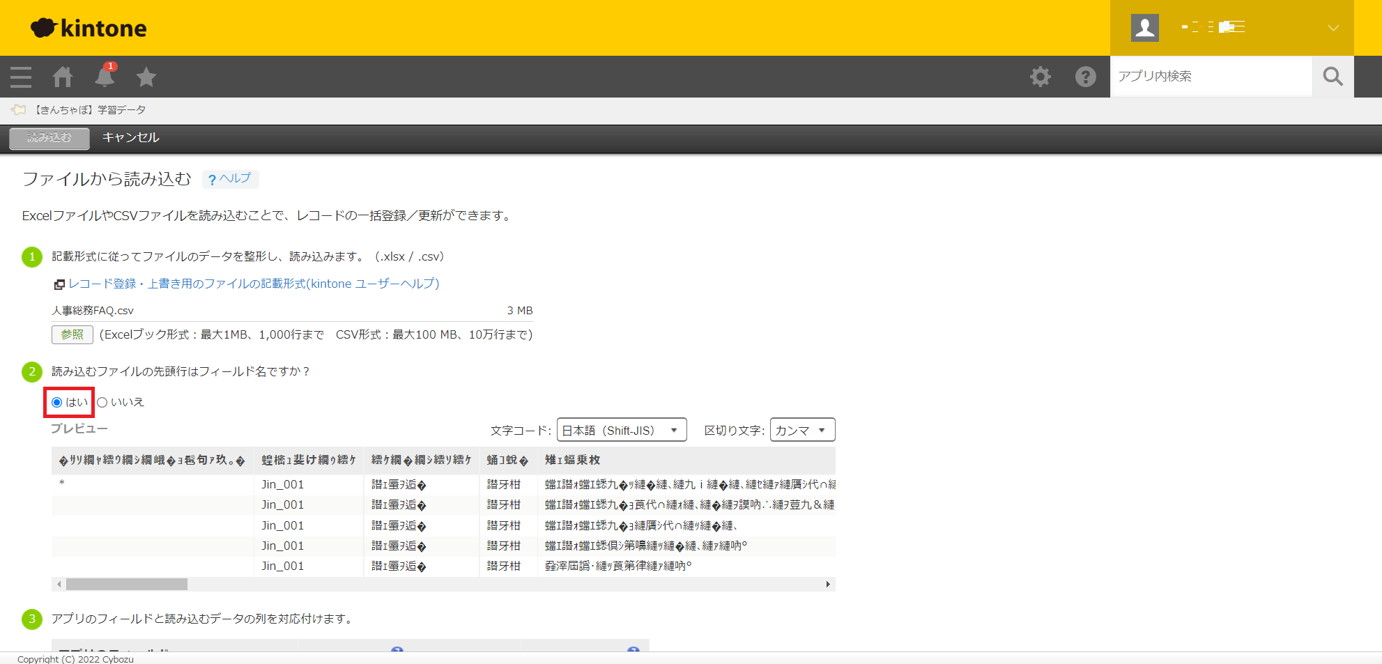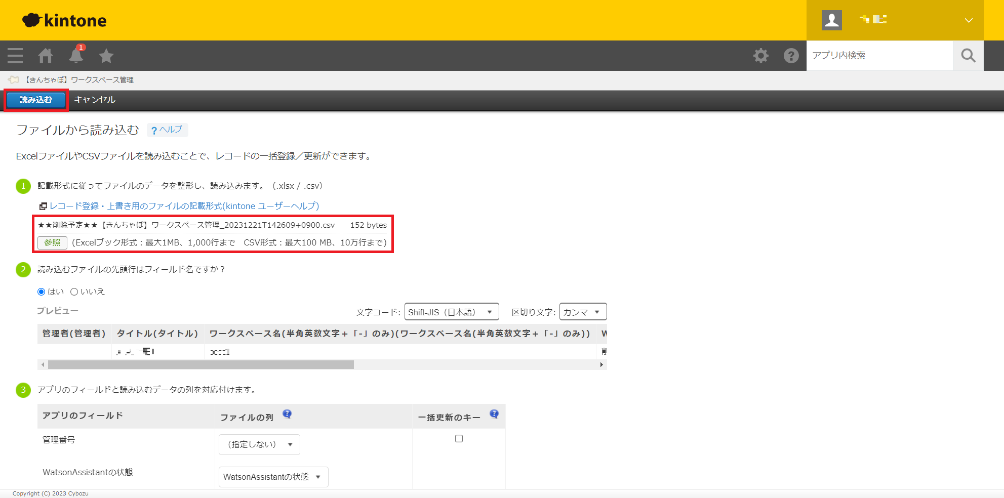 kintoneアプリに変更を加えている場合は、アプリの入れ替えが必要です。CBサポート(cb_support01@ndisol.com)に連絡いただければ、新バージョンのアプリ一式「【きんちゃぼ】アプリ一式.zip」をお渡しします。