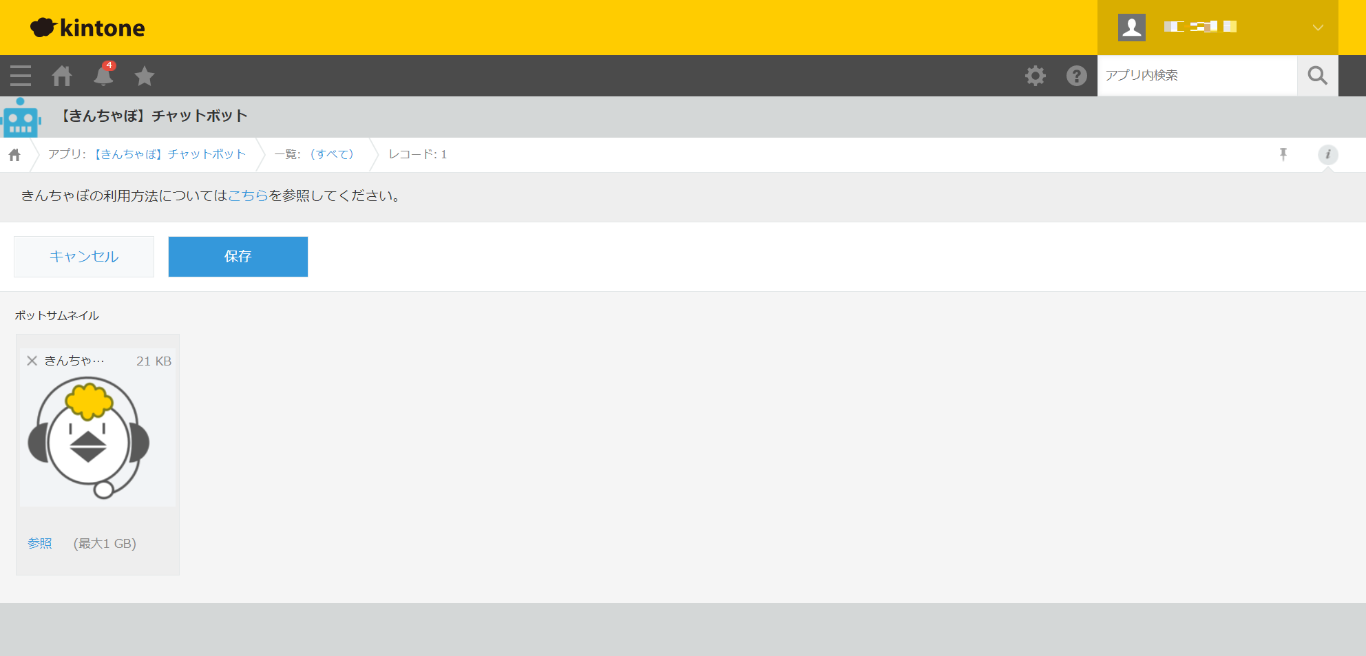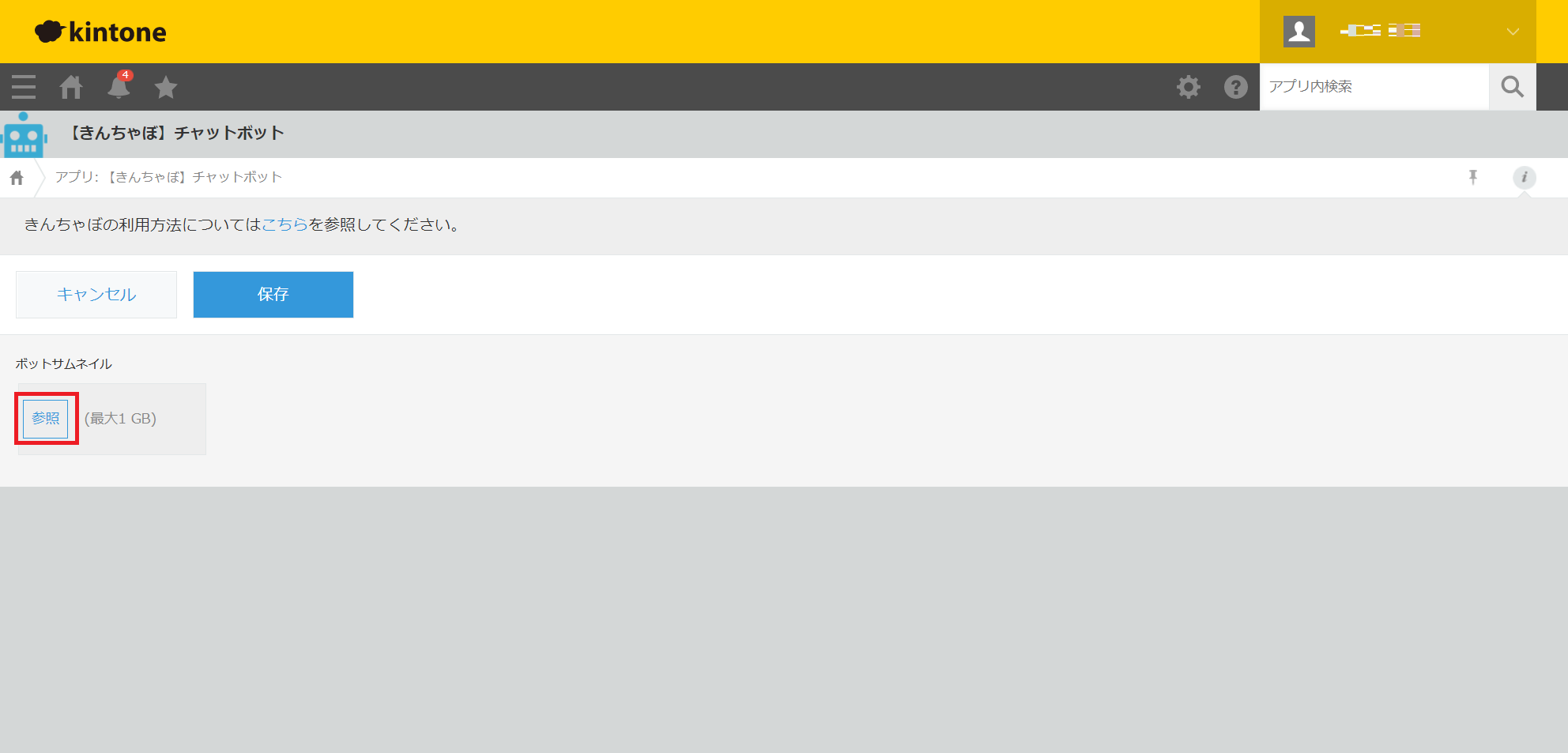 アイコンにしたい画像を選択し、「保存」をクリックします。(サンプルのボットサムネイルはアプリテンプレートと一緒にお渡ししています。)