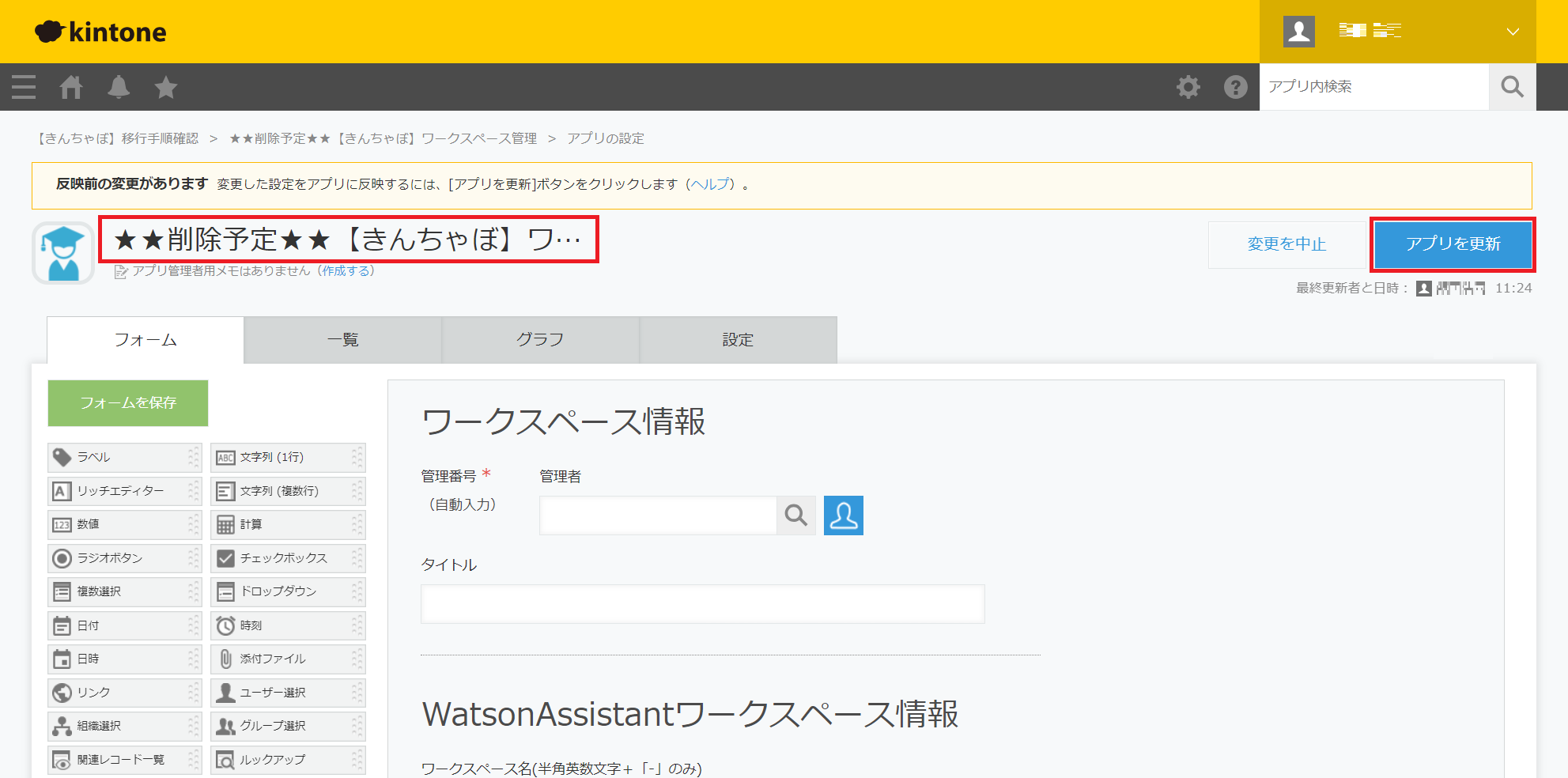 提供している標準kintoneアプリに変更を加えている場合には通常手順でのバージョンアップは行えません。この場合にはkintoneアプリ自体の手動入れ替えが必要です。CBサポートにその旨をご連絡頂き入れ替えるkintoneアプリをお受け取りください。アプリ受領後「kintoneアプリに変更を加えている場合」の手順を実施してください。