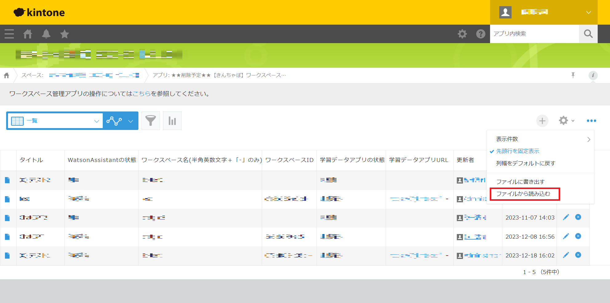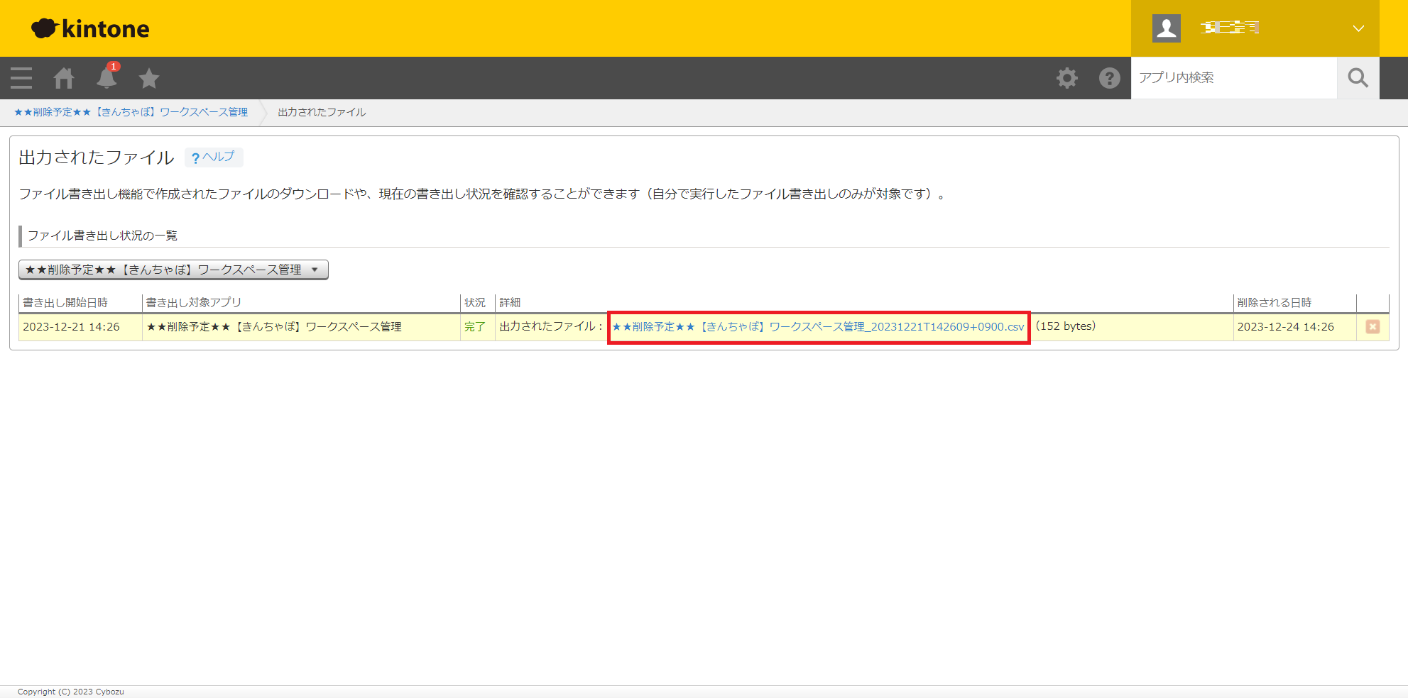 次に、新バージョンのアプリにデータを移行するため、kintoneの機能を使用して旧バージョンのアプリのレコードの一覧をCSVファイルに書き出してバックアップを取得します。