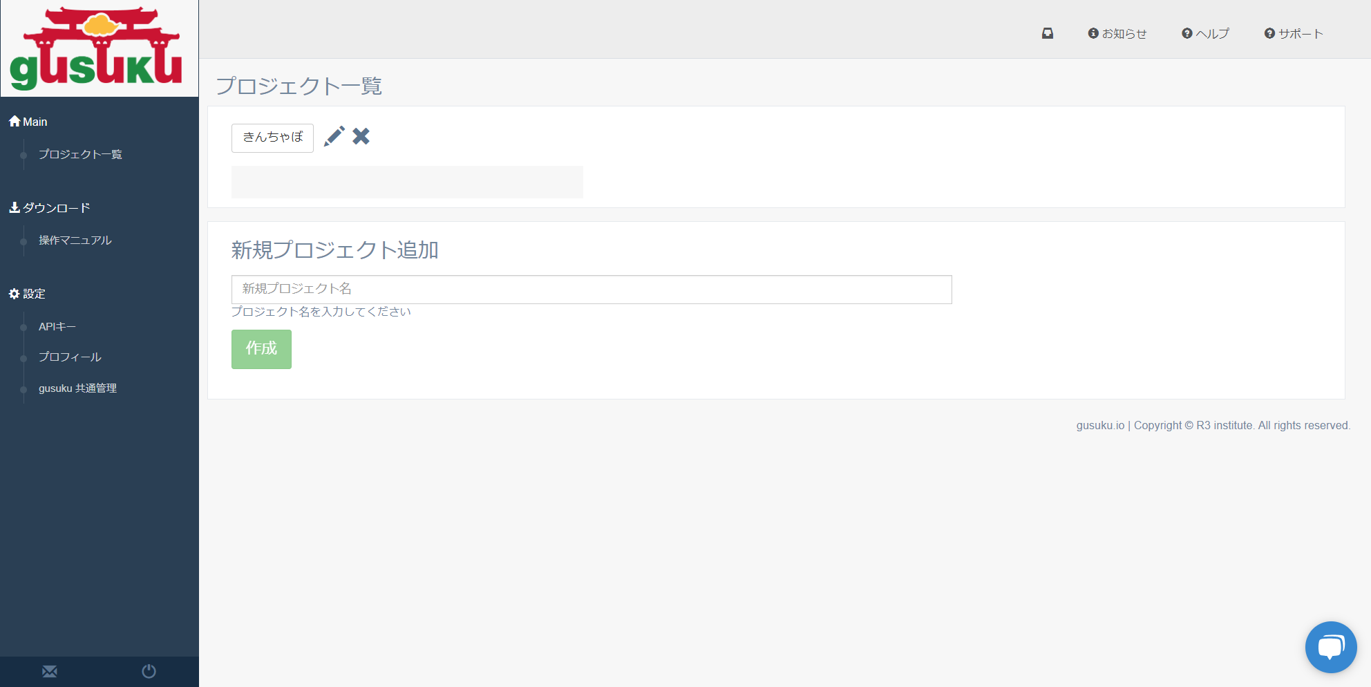 プロジェクト一覧に「きんちゃぼ」が追加されます。