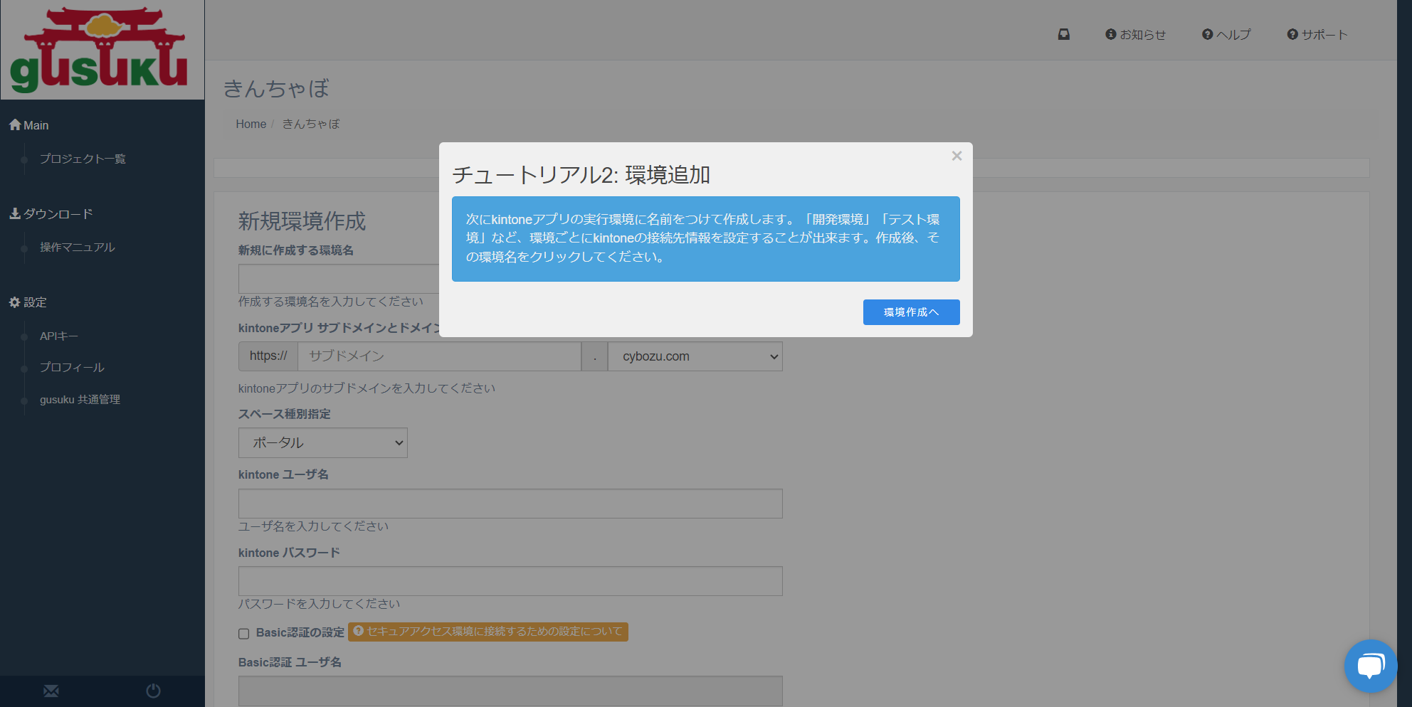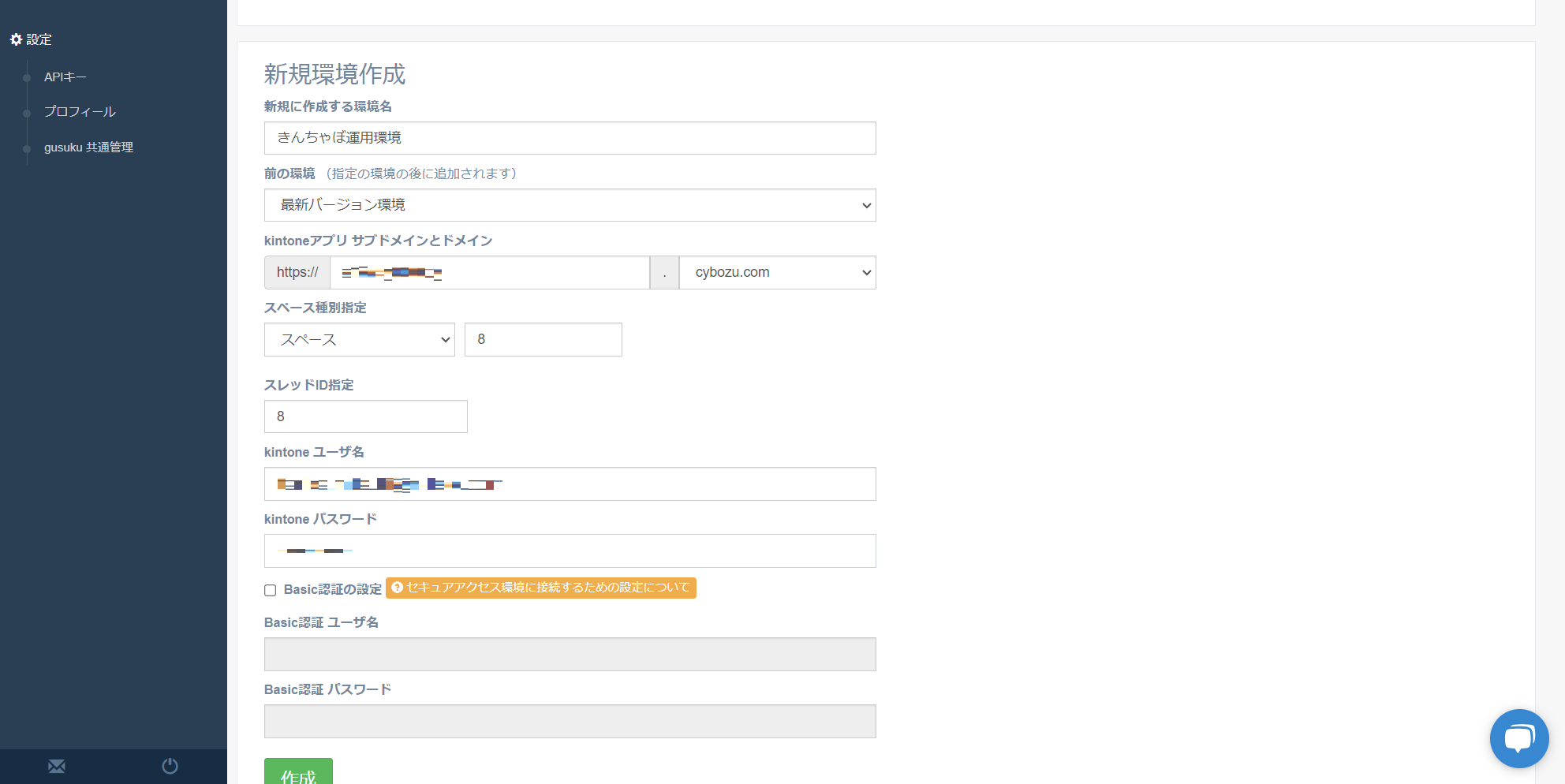 作成をクリックすると、「きんちゃぼ運用環境」が追加されます。