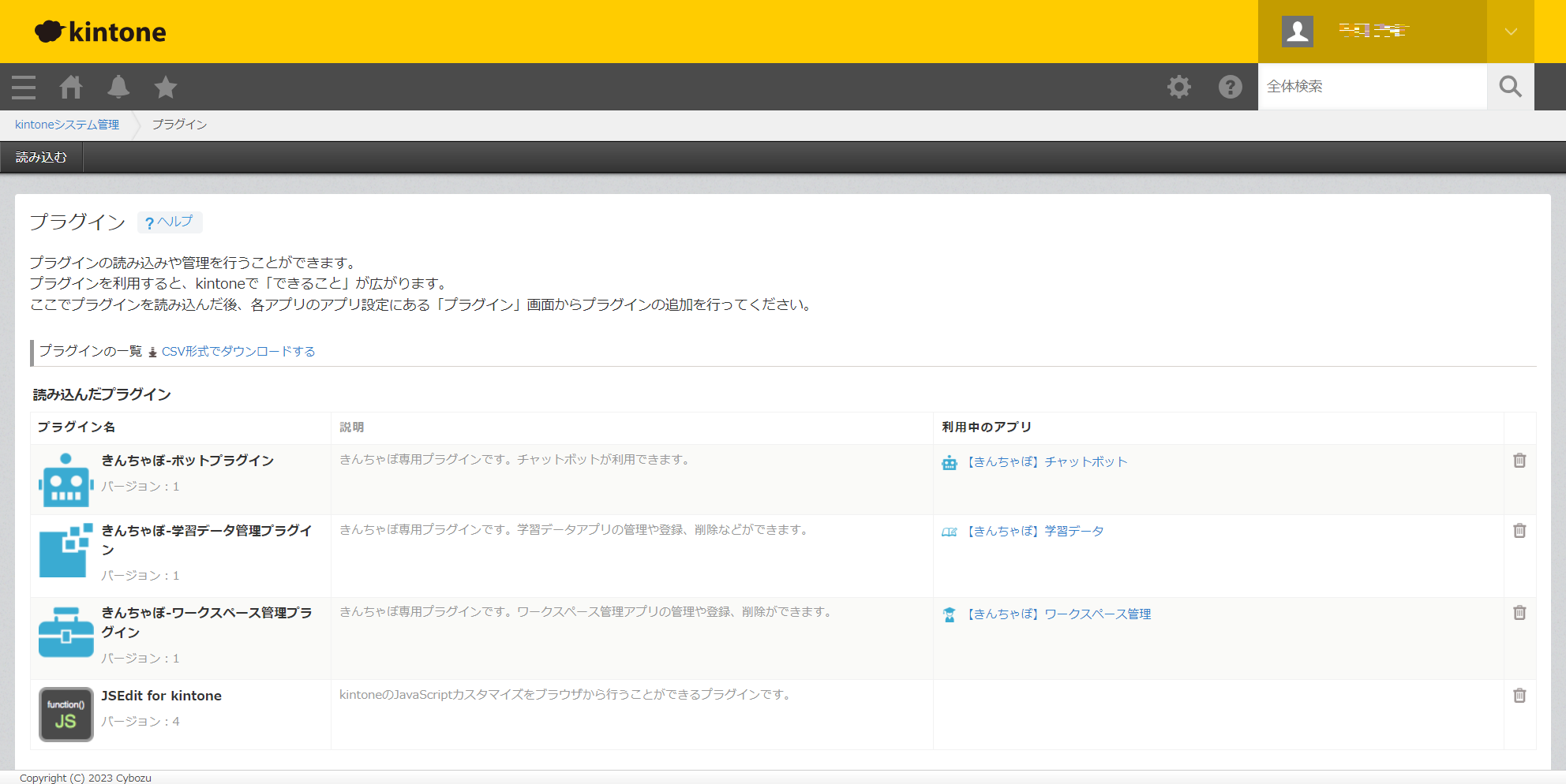 kintone ユーザ名きんちゃぼを使用している環境のアクセス権があるユーザ(管理者)