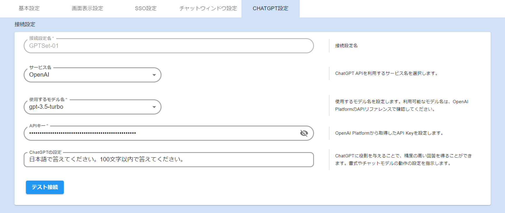 | 5 | GPTを利用する際のAPI設定で、OpenAI社に加えMicrosoft OpenAI Serviceが提供するAPIも利用できるようになりました。 | 管理画面 | CB3 CB3LE |