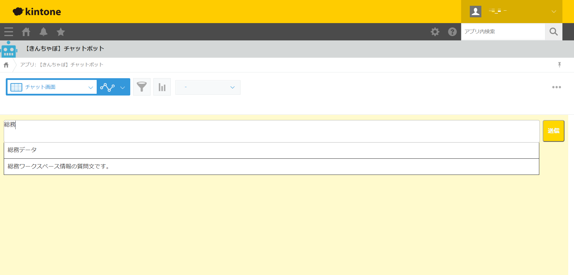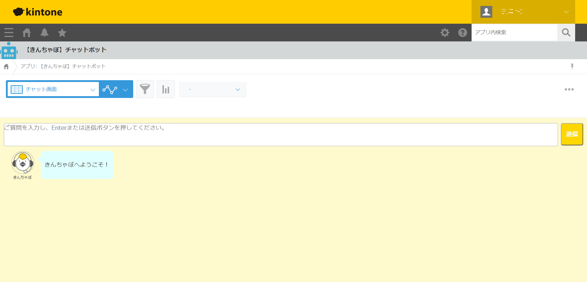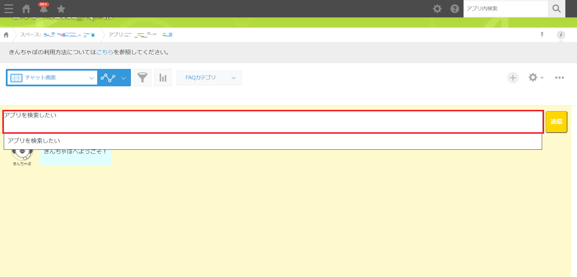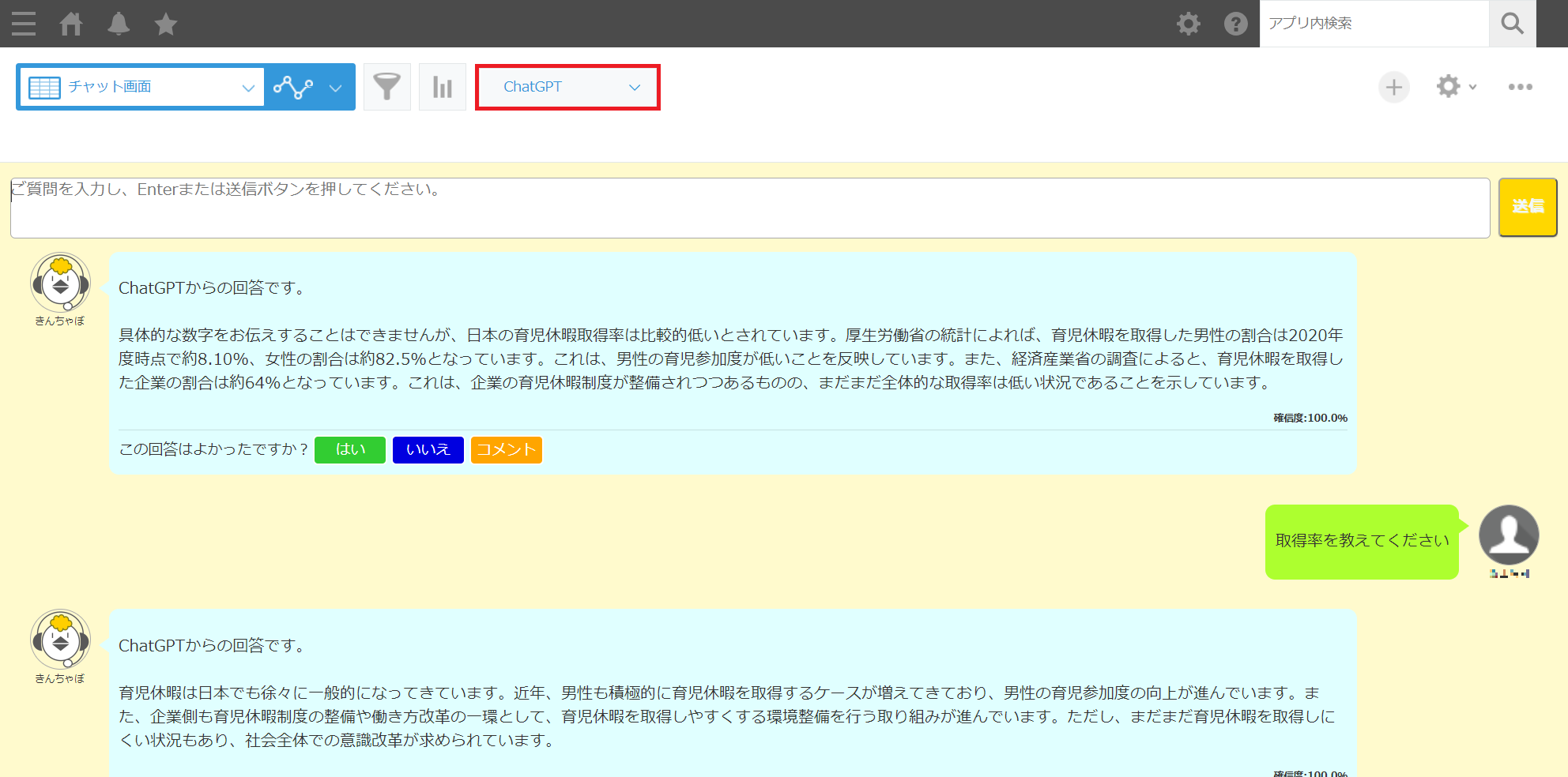 - 質問を入力し、送信をクリックすることできんちゃぼに質問することができます。