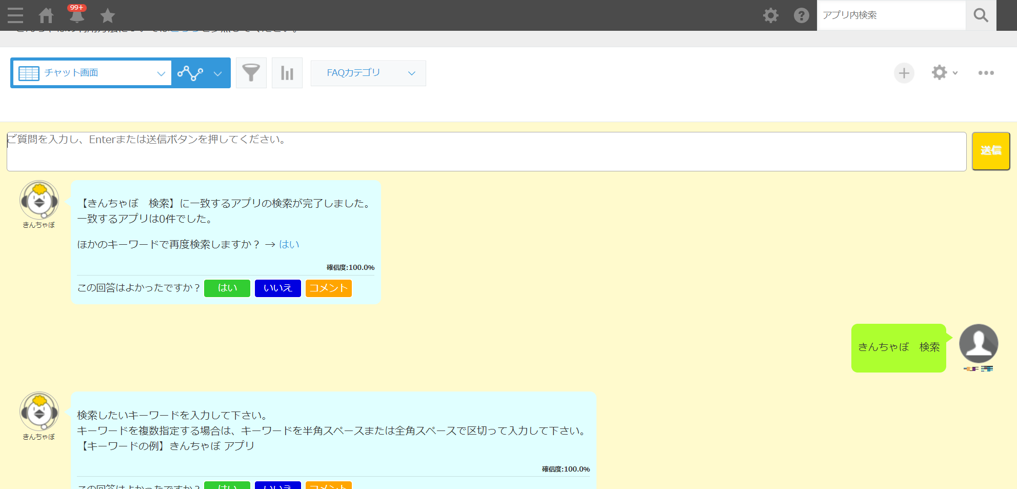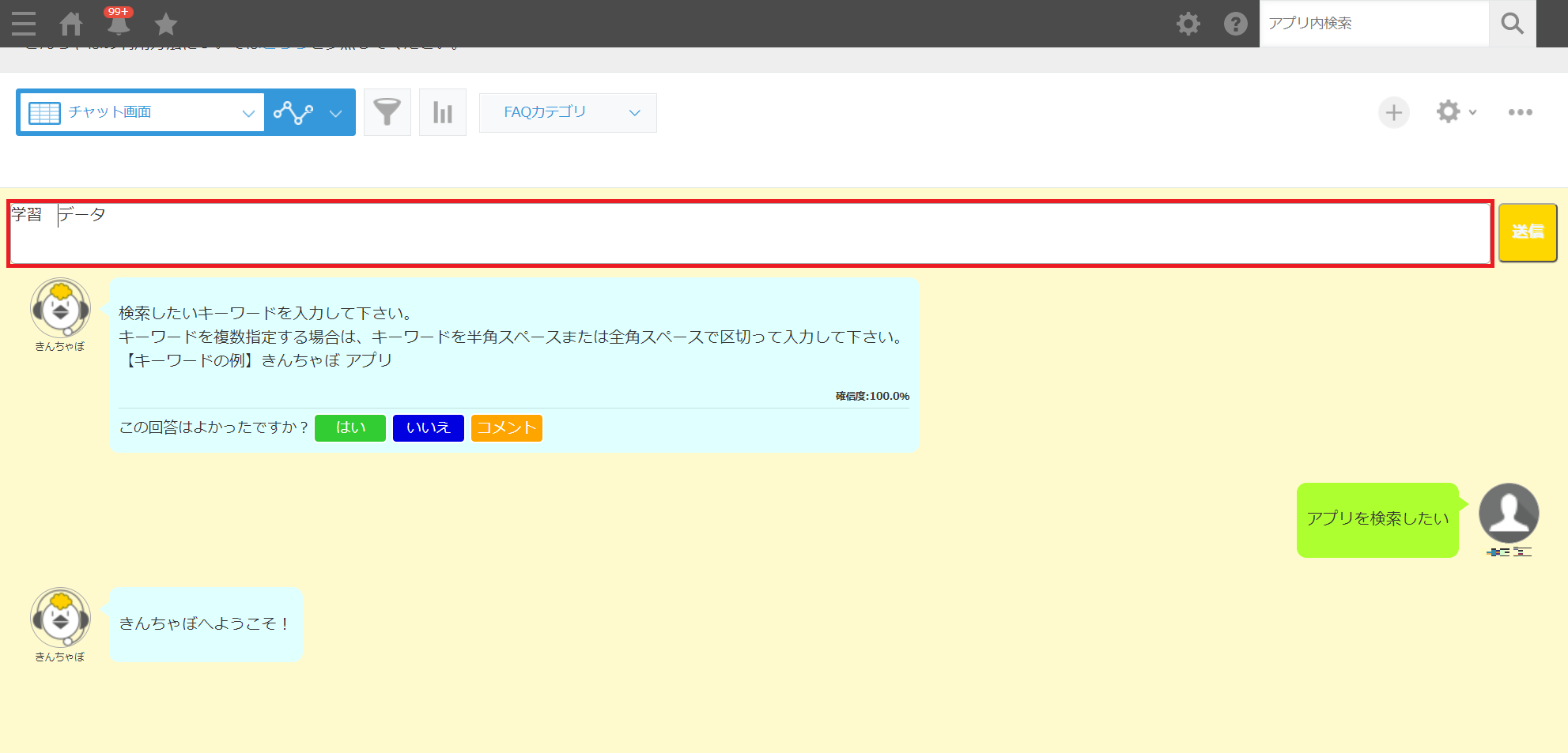 きんちゃぼでは質問と答えのセットをFAQカテゴリとして分けて学習することができます。