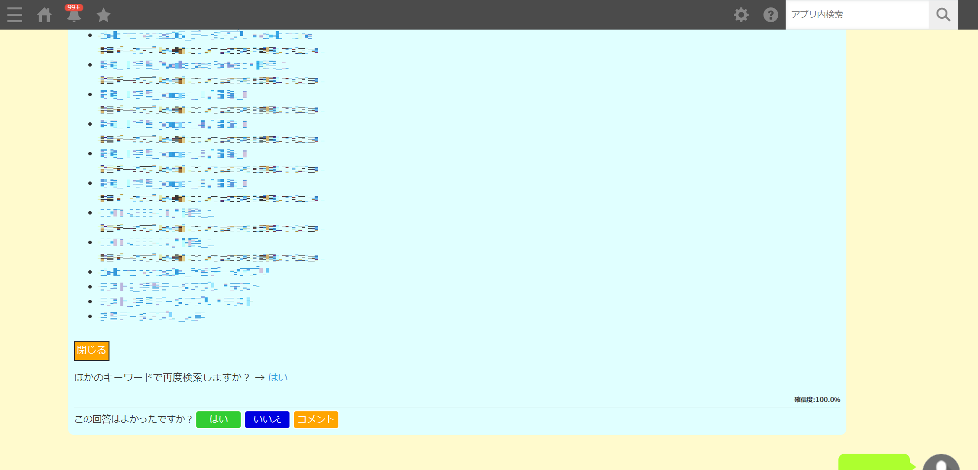 アプリ検索を行うための質問については自由に設定することができます。どのような質問になっているかは管理者にお問い合わせください。